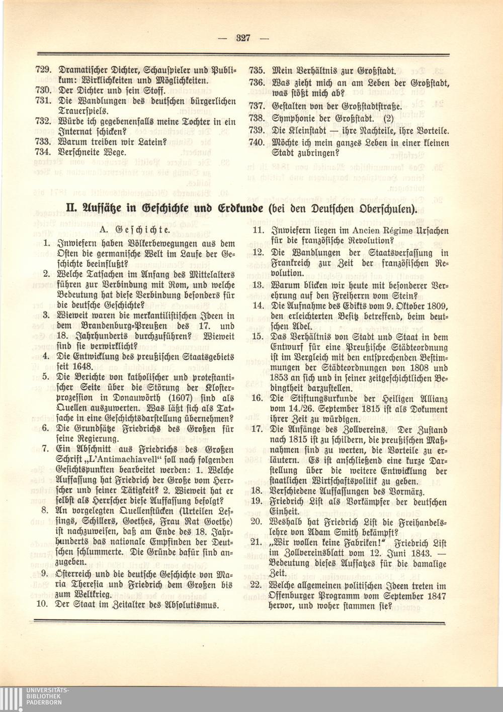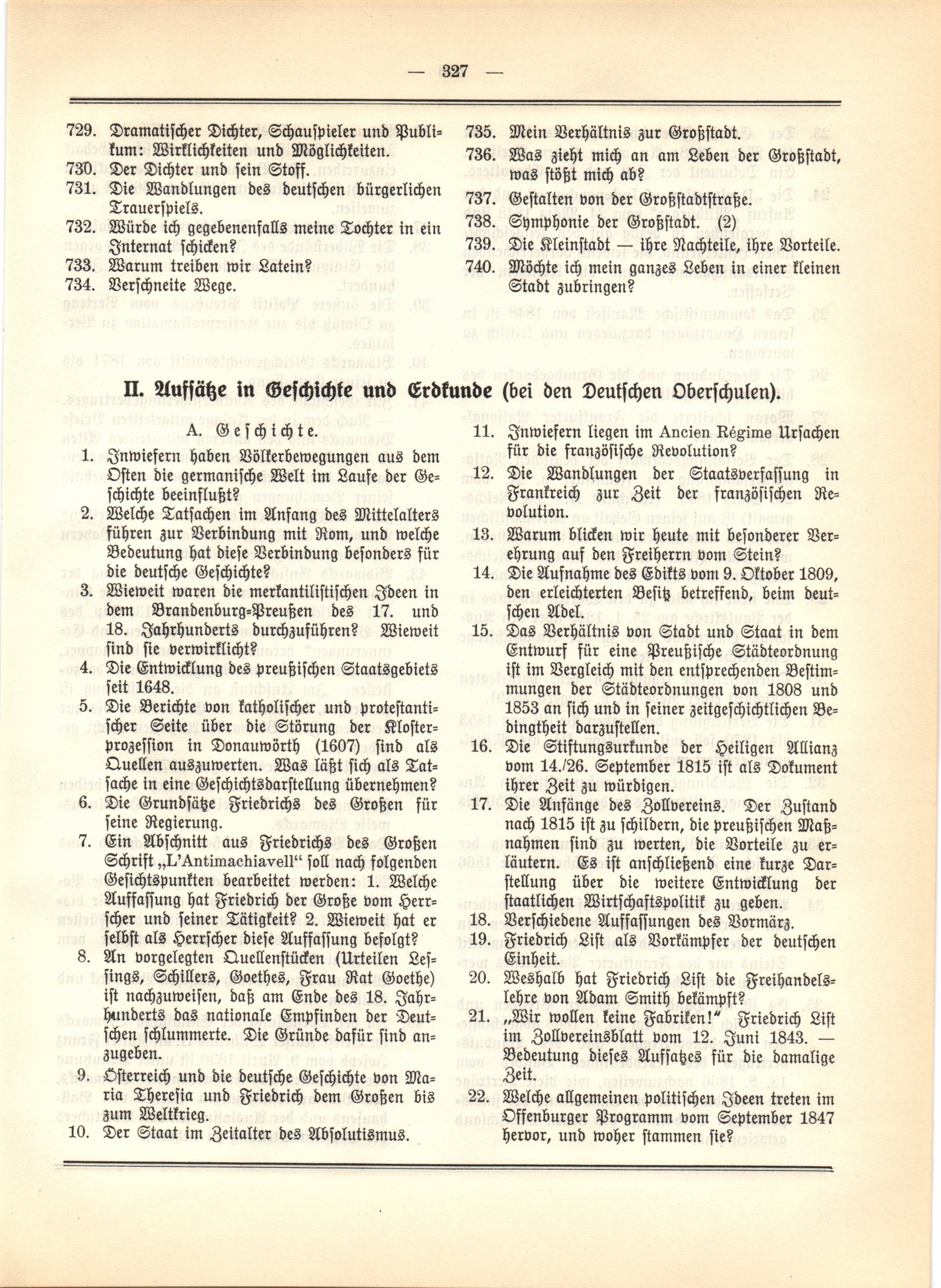 II. Aufsätze in Geschichte und Erdkunde (bei den Deutschen Oberschulen)