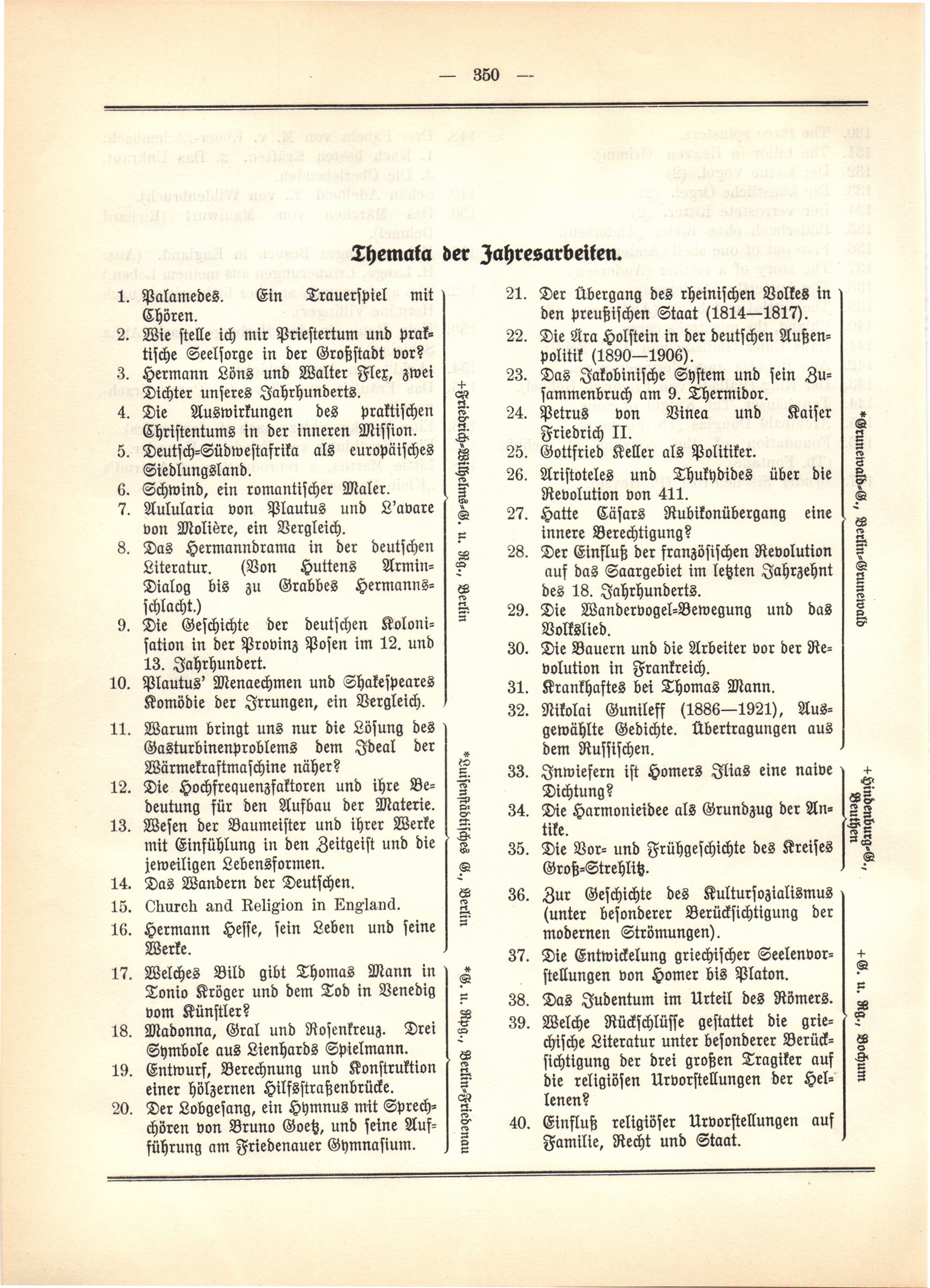 Themata der Jahresarbeiten