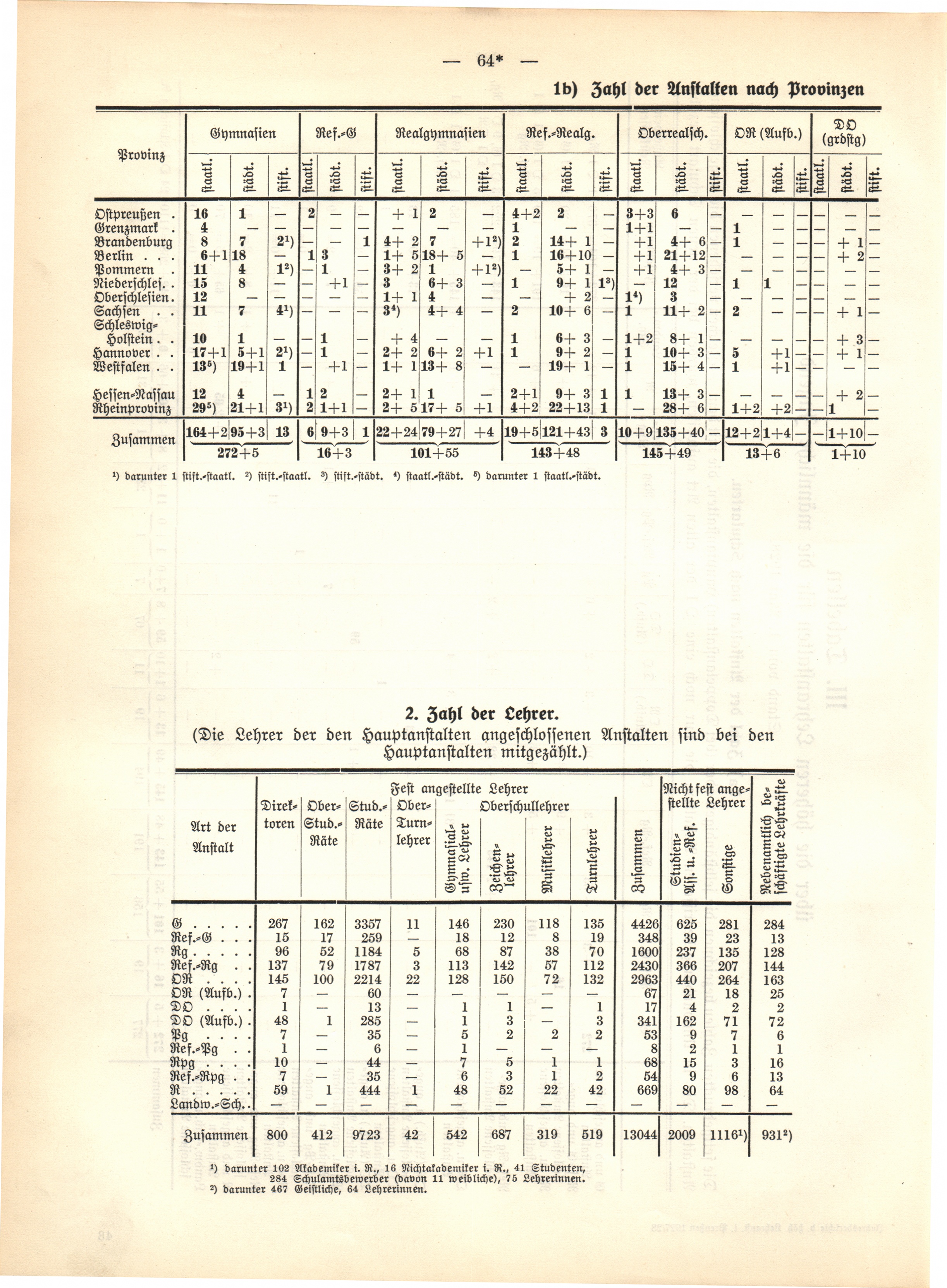 III. Tabellen über die höheren Lehranstalten für die männliche Jugend. Stand vom[...]