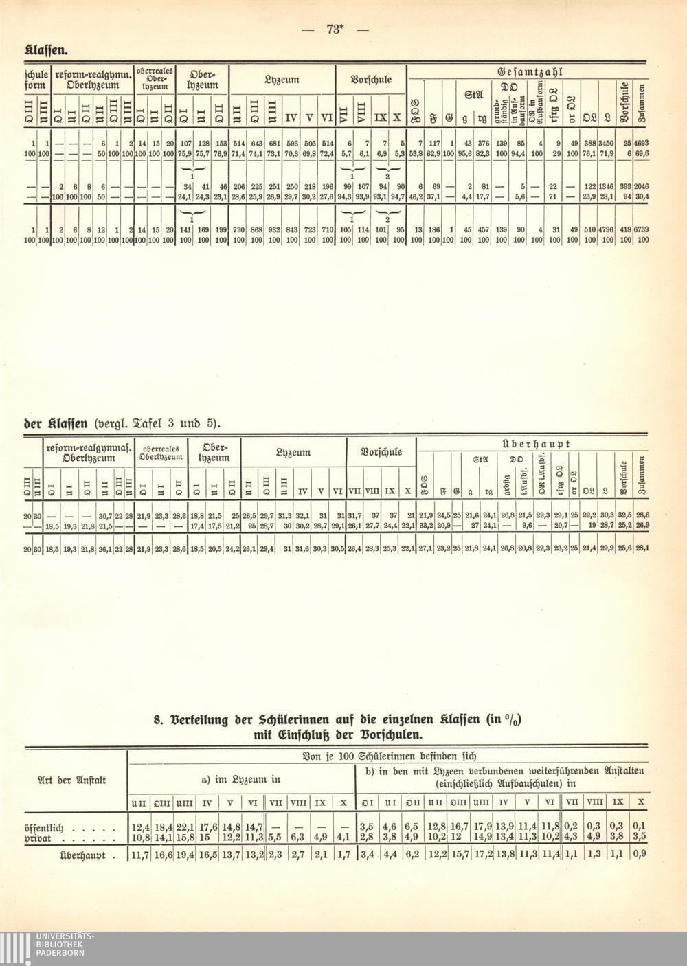 8. Verteilung der Schülerinnen auf die einzelnen Klassen (in %) mit Einschluß der[...]