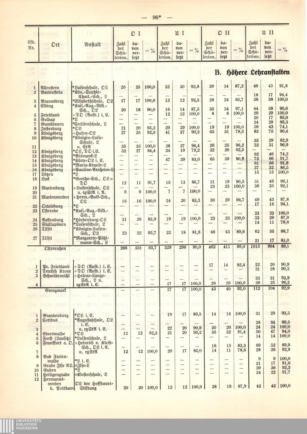 B. Höhere Lehranstalten für die weibliche Jugend.