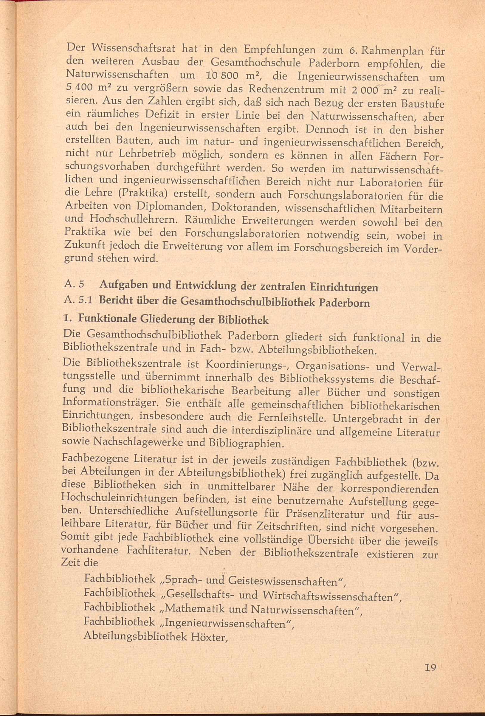A. 5.1 Bericht über die Gesamthochschulbibliothek Paderborn