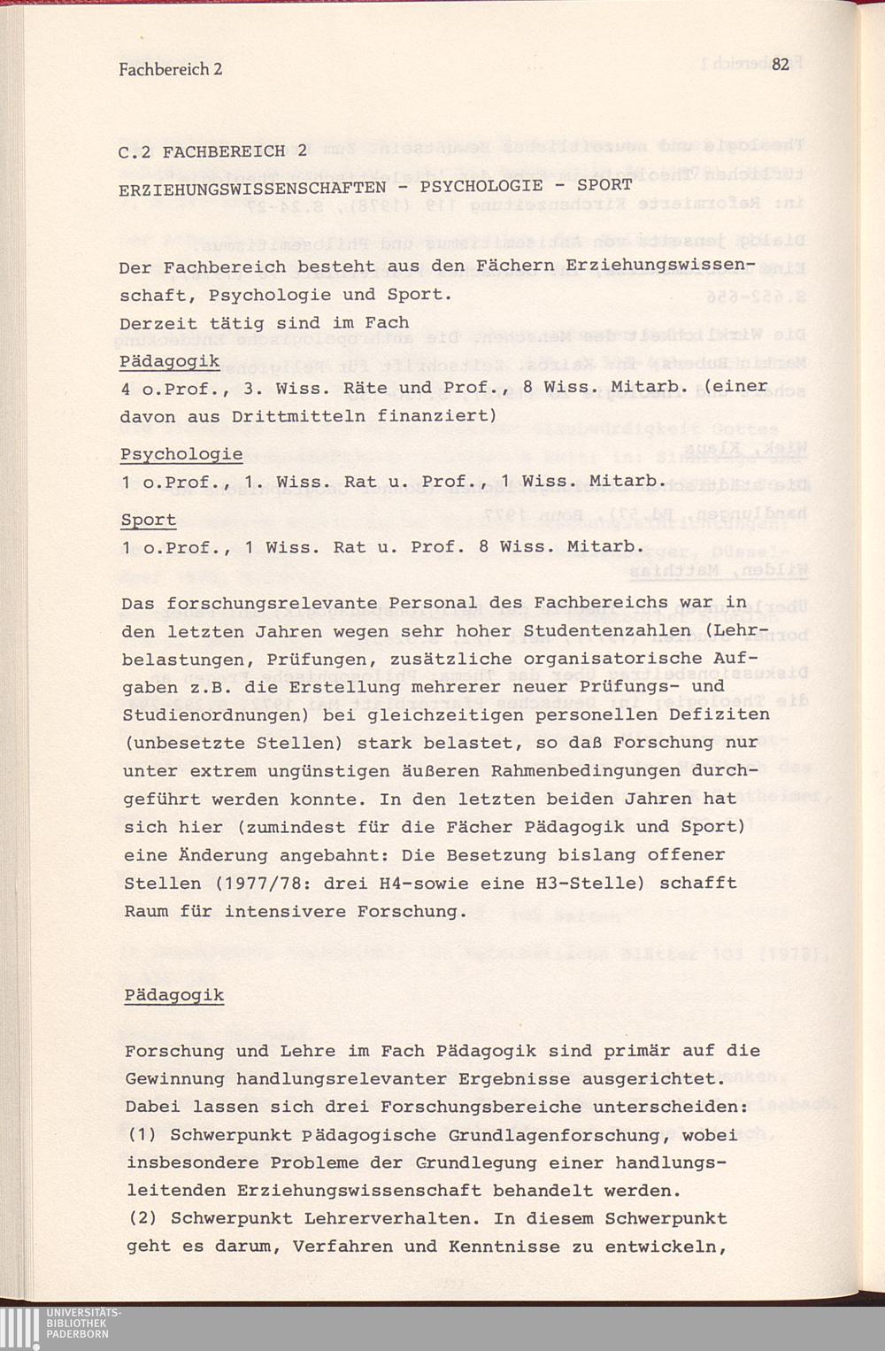 C. 2 Fachbereich 2 (Erziehungswissenschaften - Psychologie - Sport)