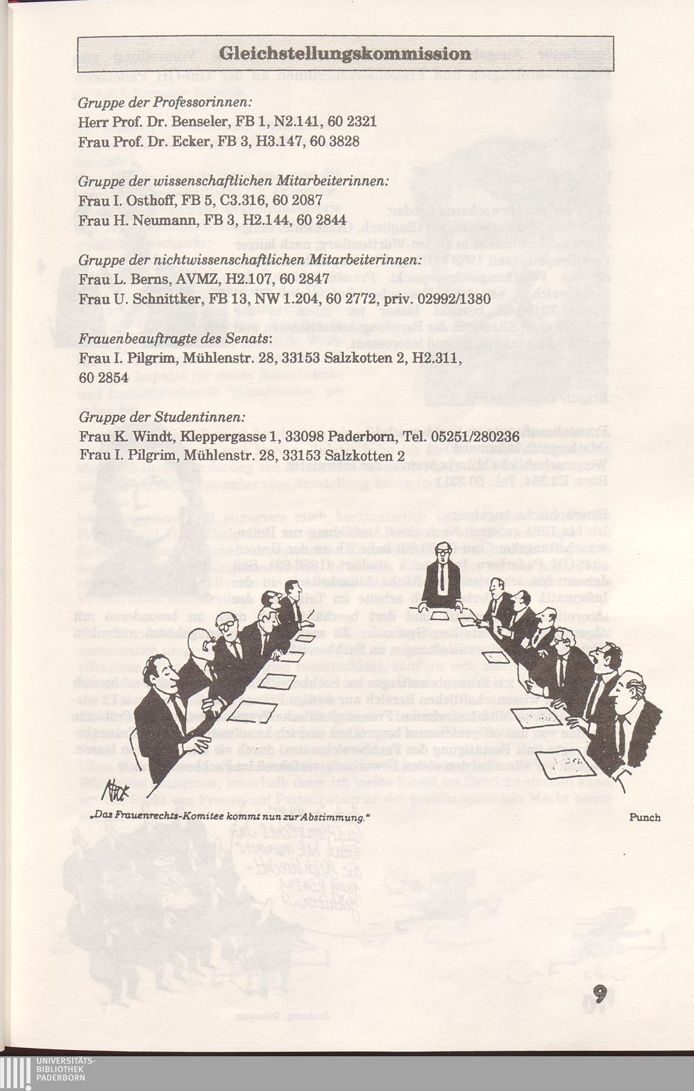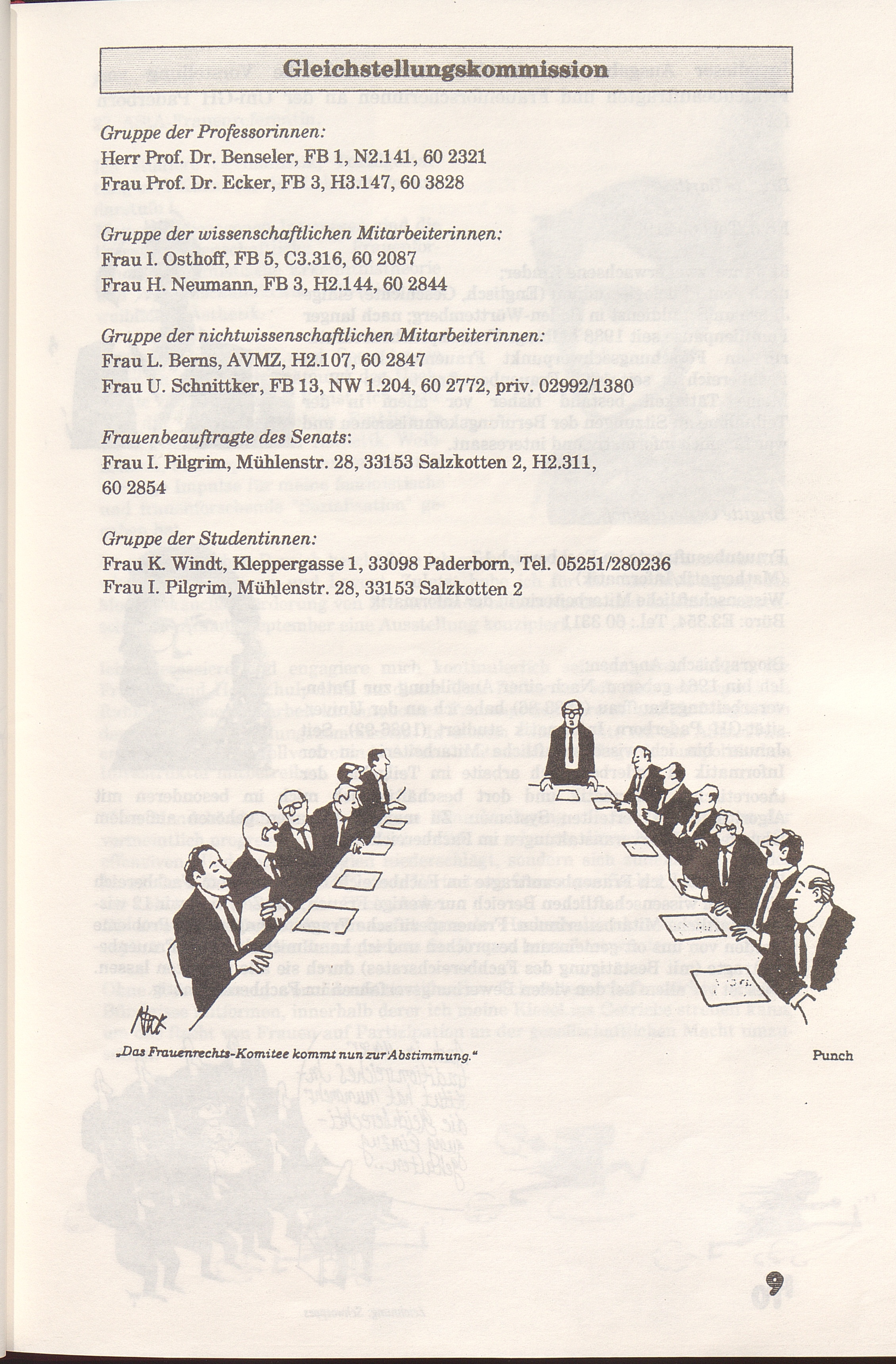 Vorstellung von Frauenbeauftragten, AStA-Frauenreferentin, Frauenforscherinnen