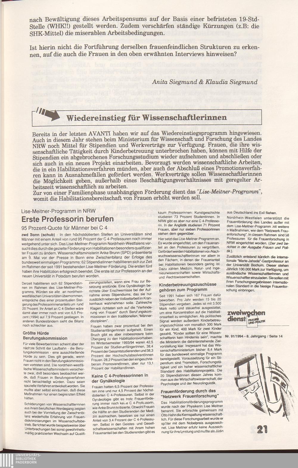 Frauen im Wissenschaftsbetrieb II: Erfahrene Diskriminierungen, Aufgaben der Frauenbeauftragten (Anita und Klaudia Siegmund)