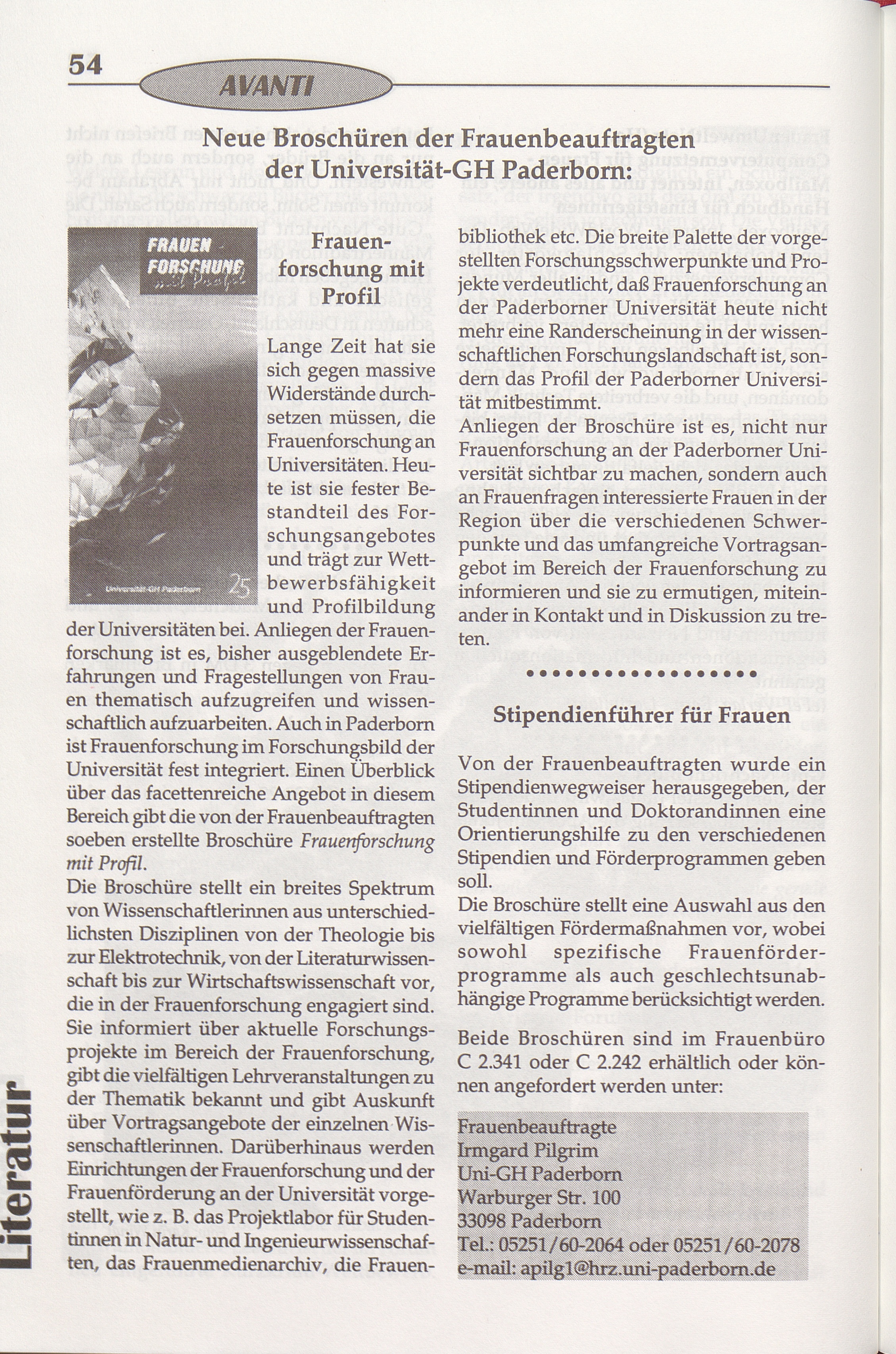 Neue Broschüren der Frauenbeauftragten