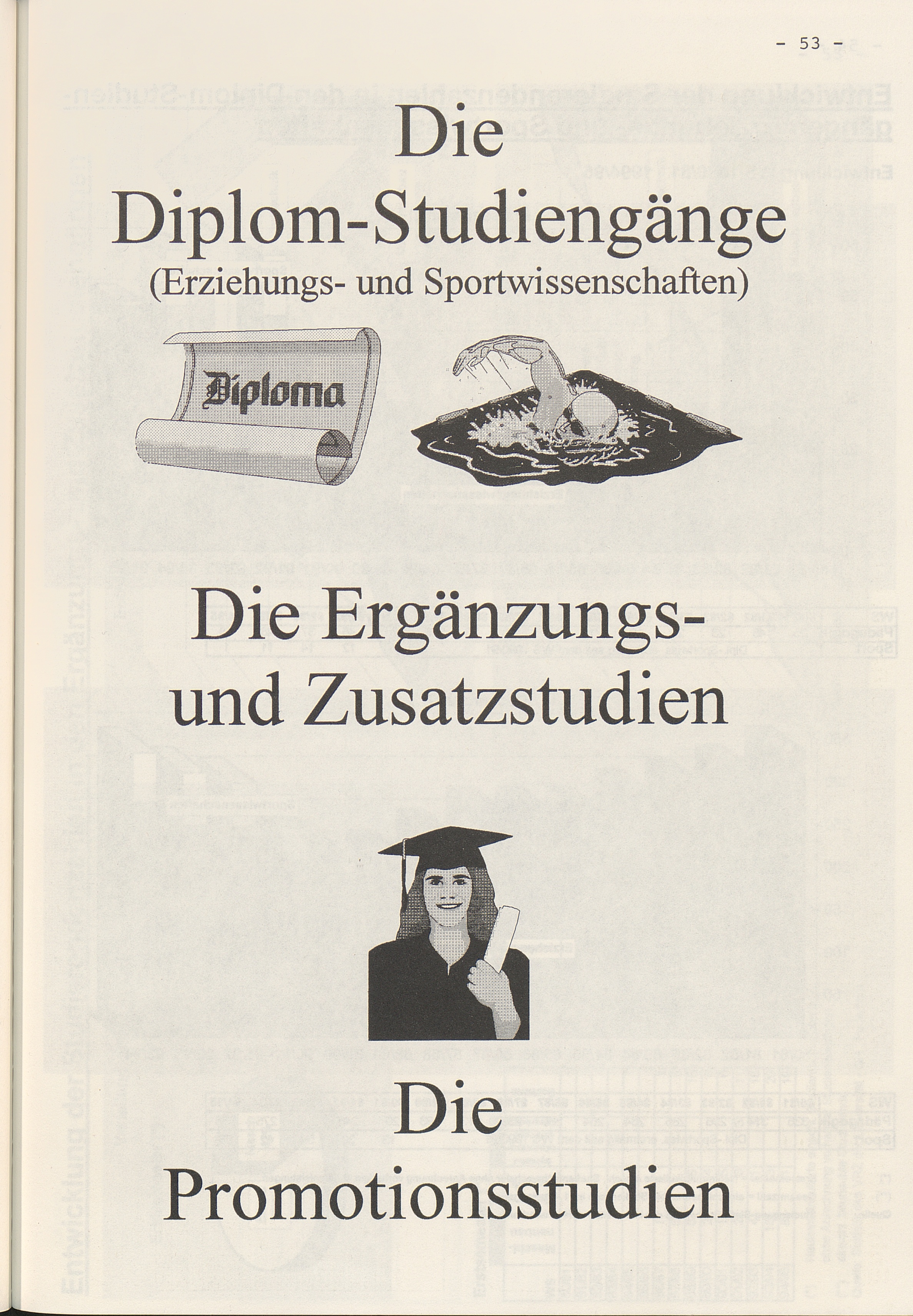 Die Diplom-Studiengänge, Ergänzungs- und Zusatzstudiengänge und Promotionen (Entwicklung und Verteilung)