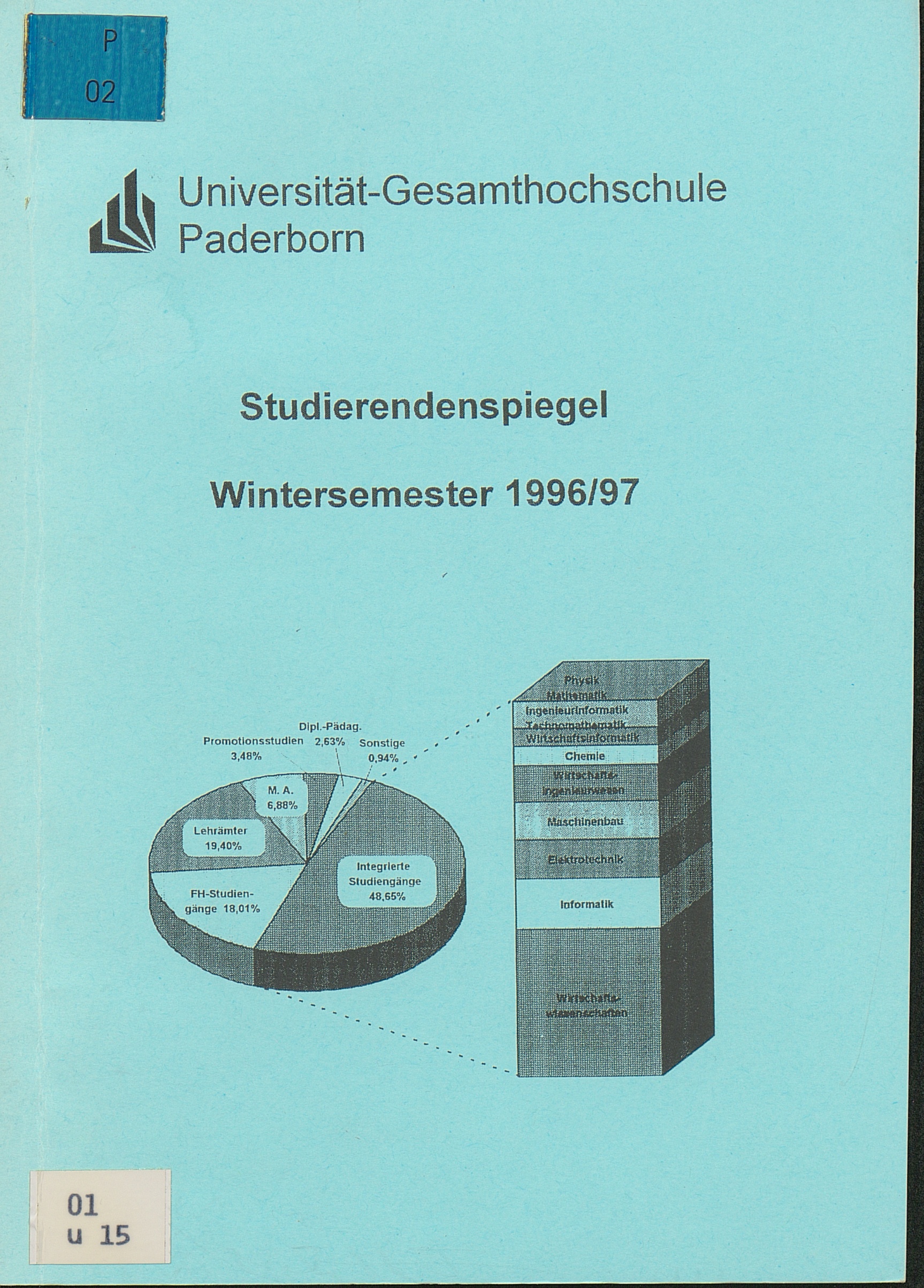 Studierendenzahlen im Überblick im Wintersemester 1996/97 (Studiengangszahlen, Belegungen je Fach, Zweithörer; Alters- und Hochschulsemesterstruktur)