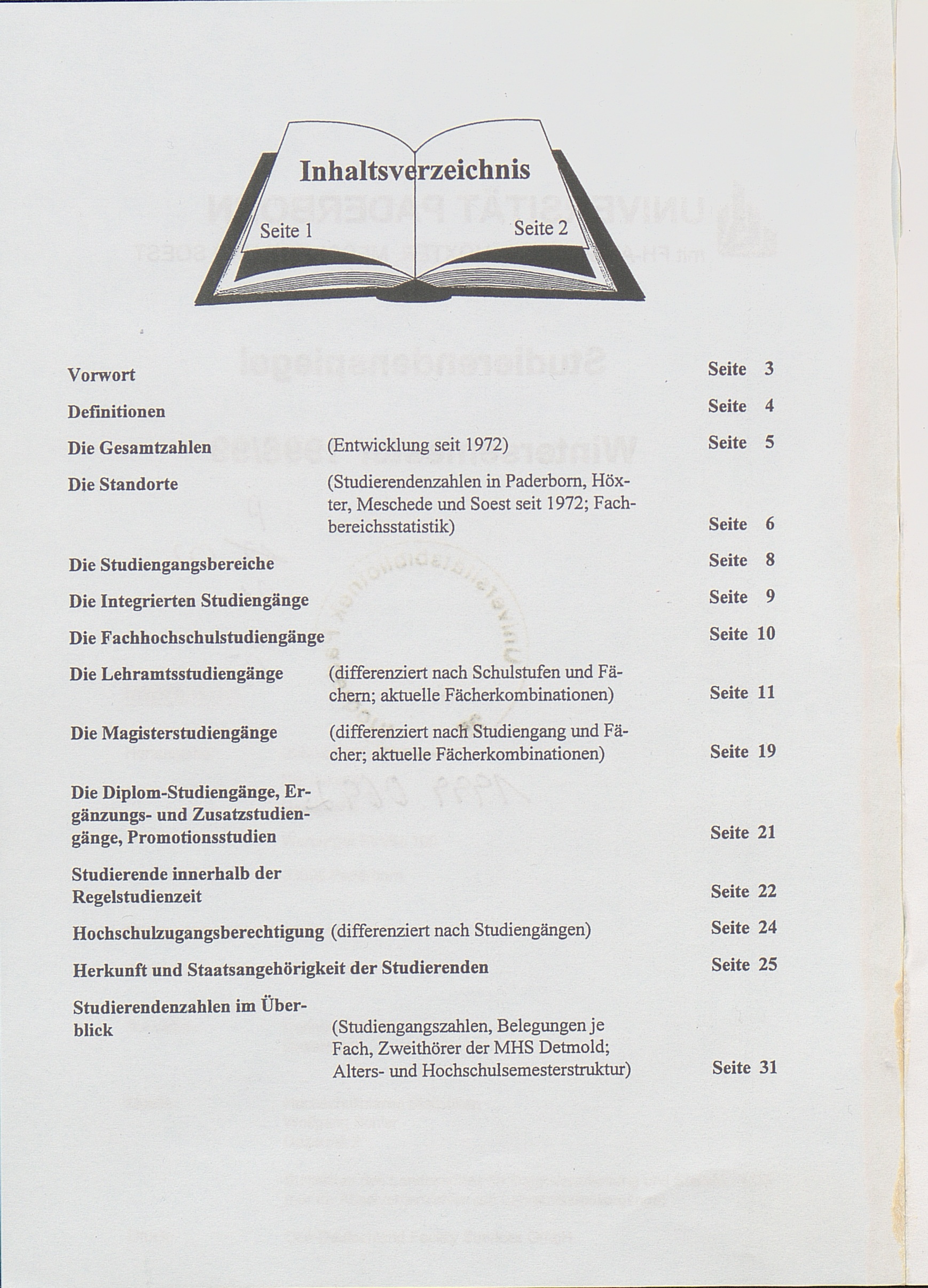 Die Standorte (Studierendenzahlen in Paderborn, Höxter, Meschede und Soest seit 1972; Fachbereichsstatistik)