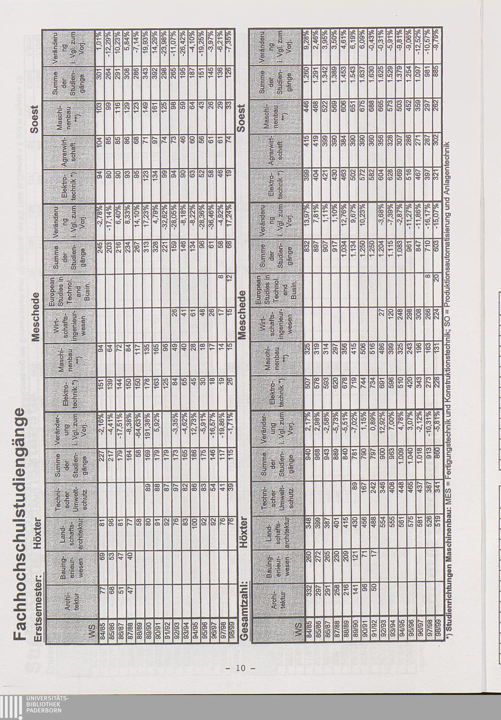 Die Standorte (Studierendenzahlen in Paderborn, Höxter, Meschede und Soest seit 1972; Fachbereichsstatistik)