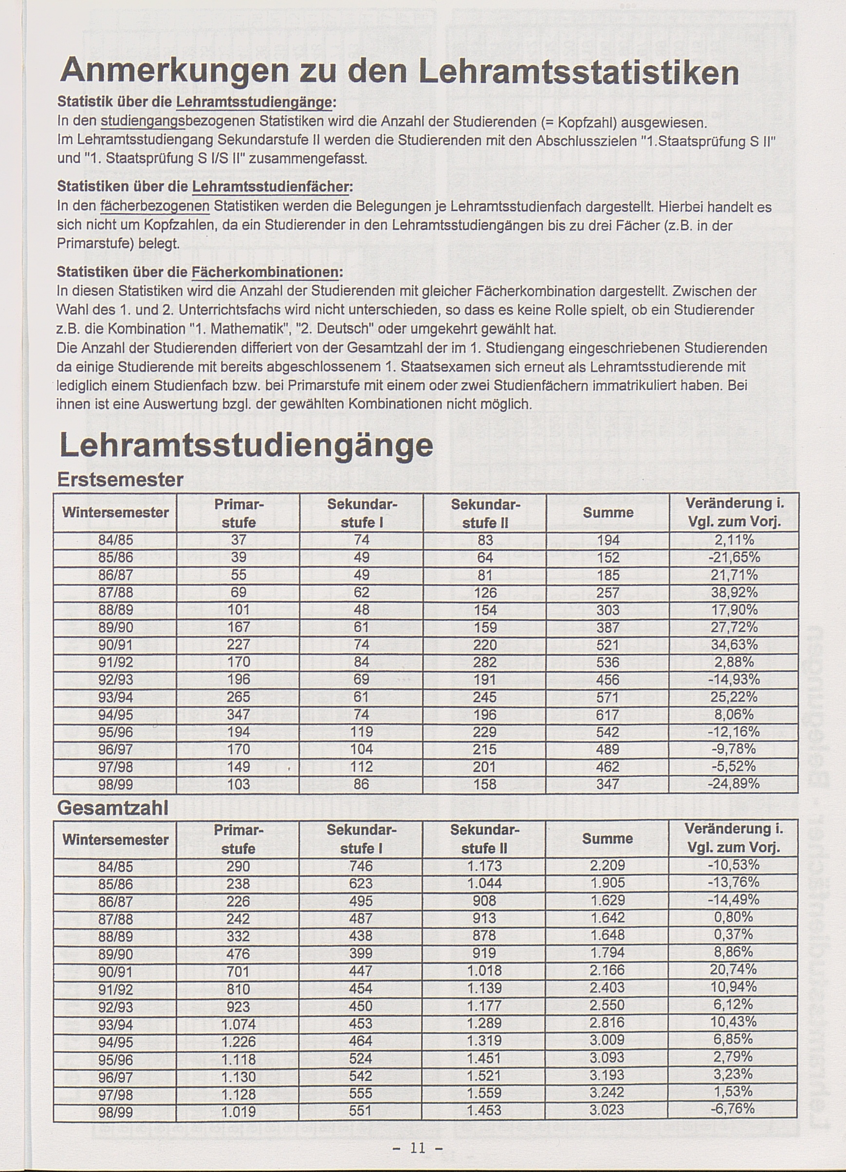 Die Lehramtsstudiengänge (differenziert nach Schulstufen und Fächern; aktuelle Fächerkombination)