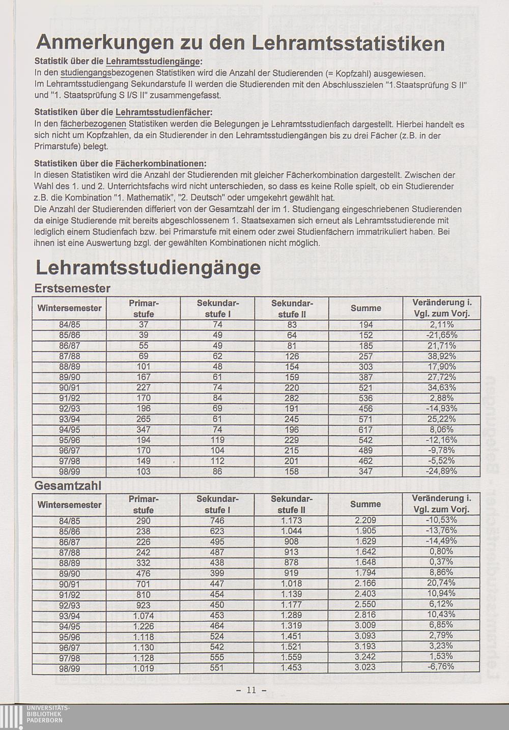 Die Lehramtsstudiengänge (differenziert nach Schulstufen und Fächern; aktuelle F[...]