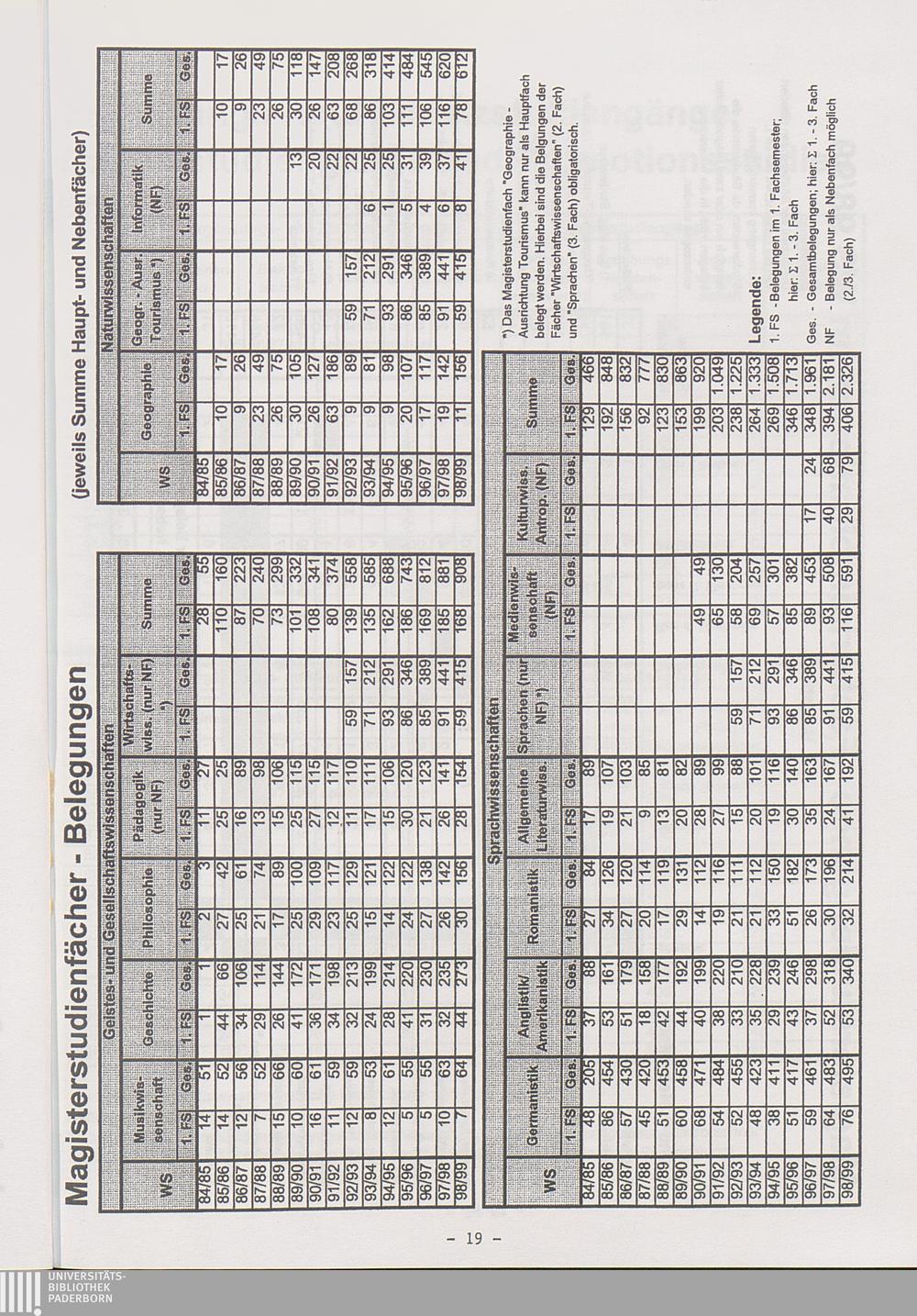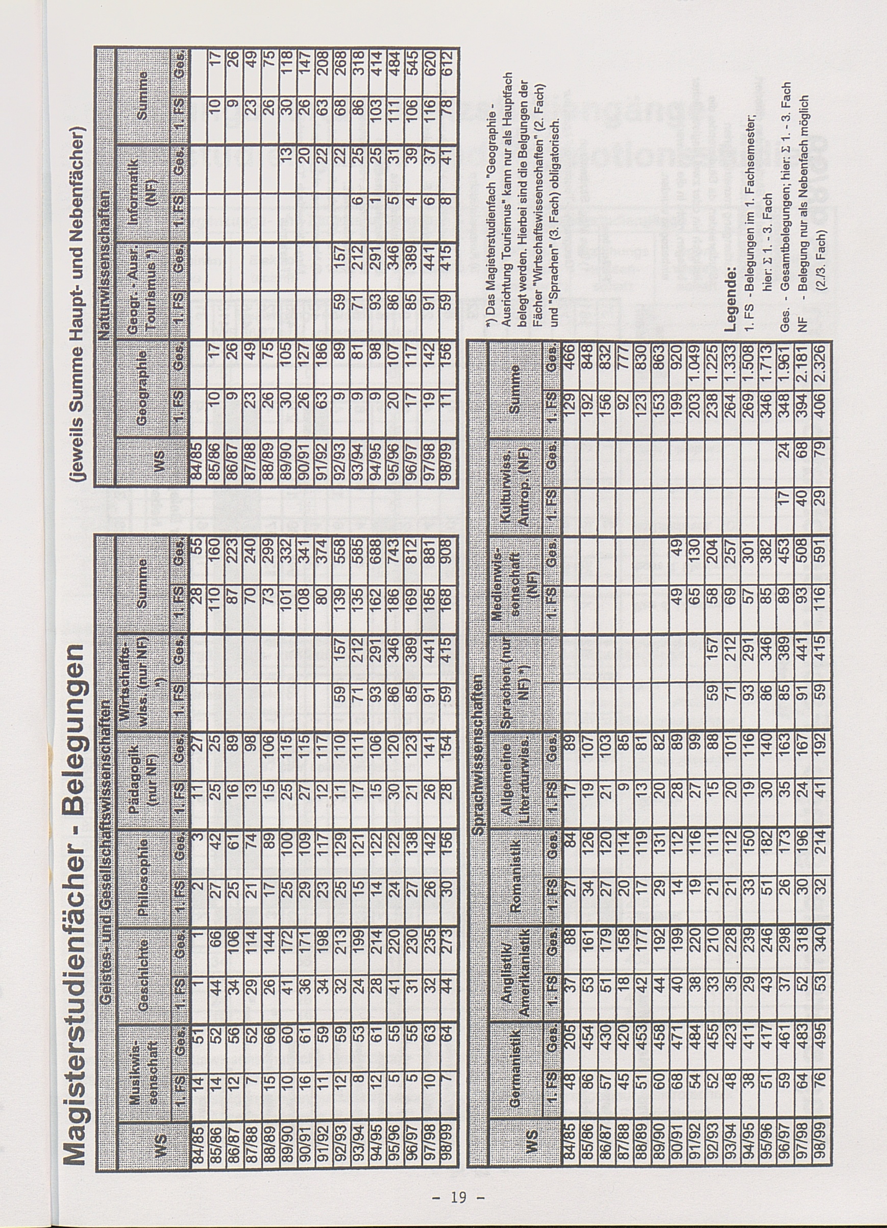 Die Magisterstudiengänge (differenziert nach Studiengang und Fächern; aktuelle F[...]