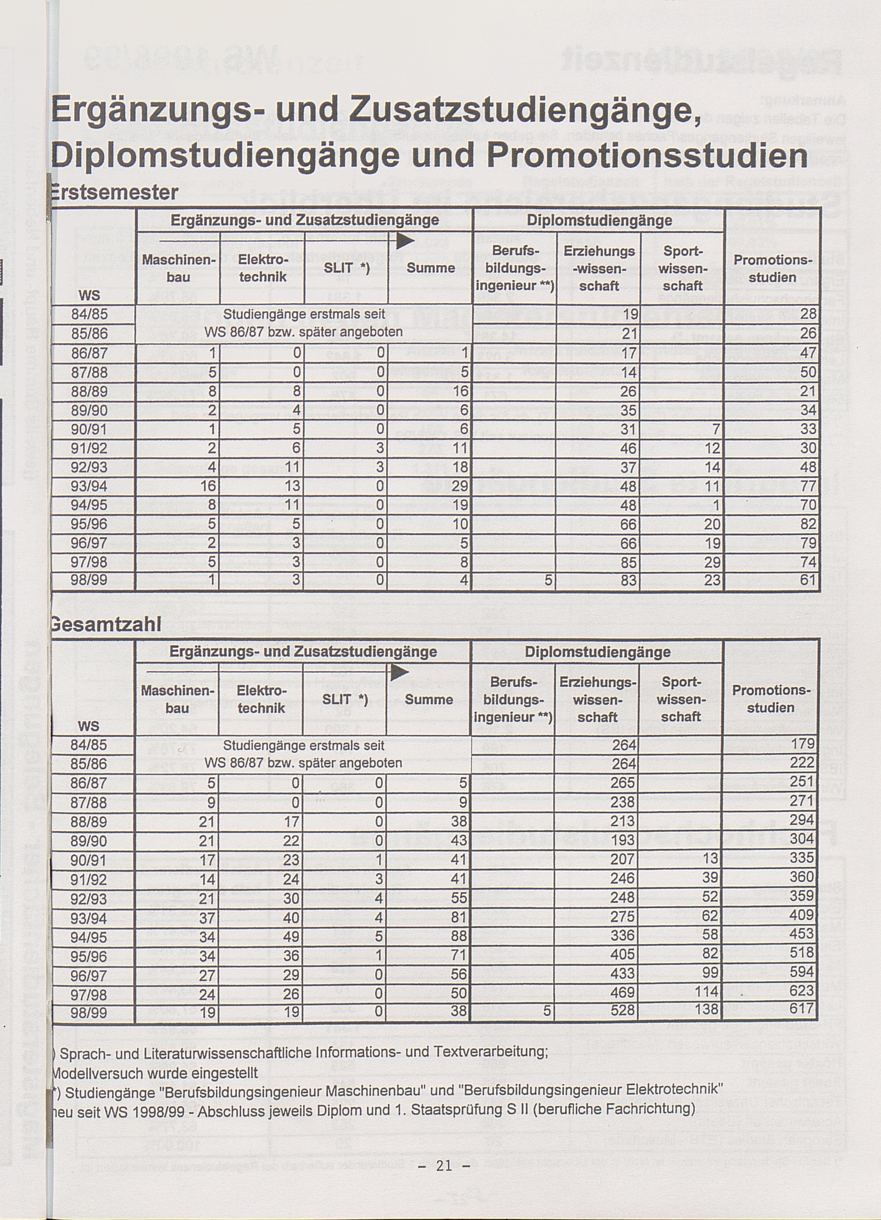 Die Diplom-Studiengänge, Ergänzungs- und Zusatzstudiengänge, Promotionsstudien