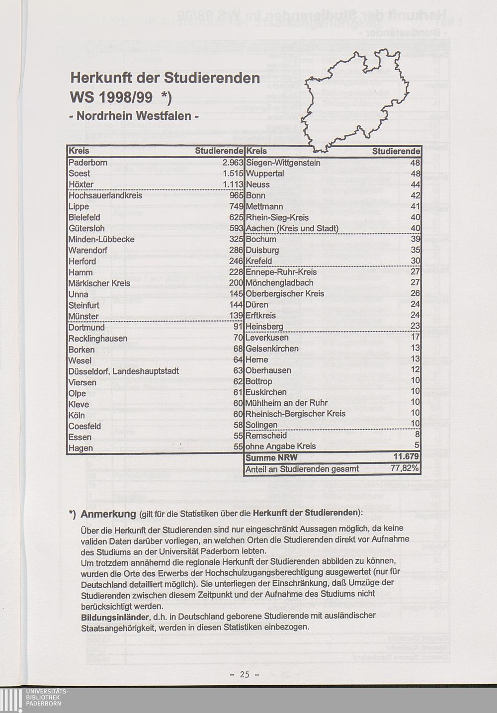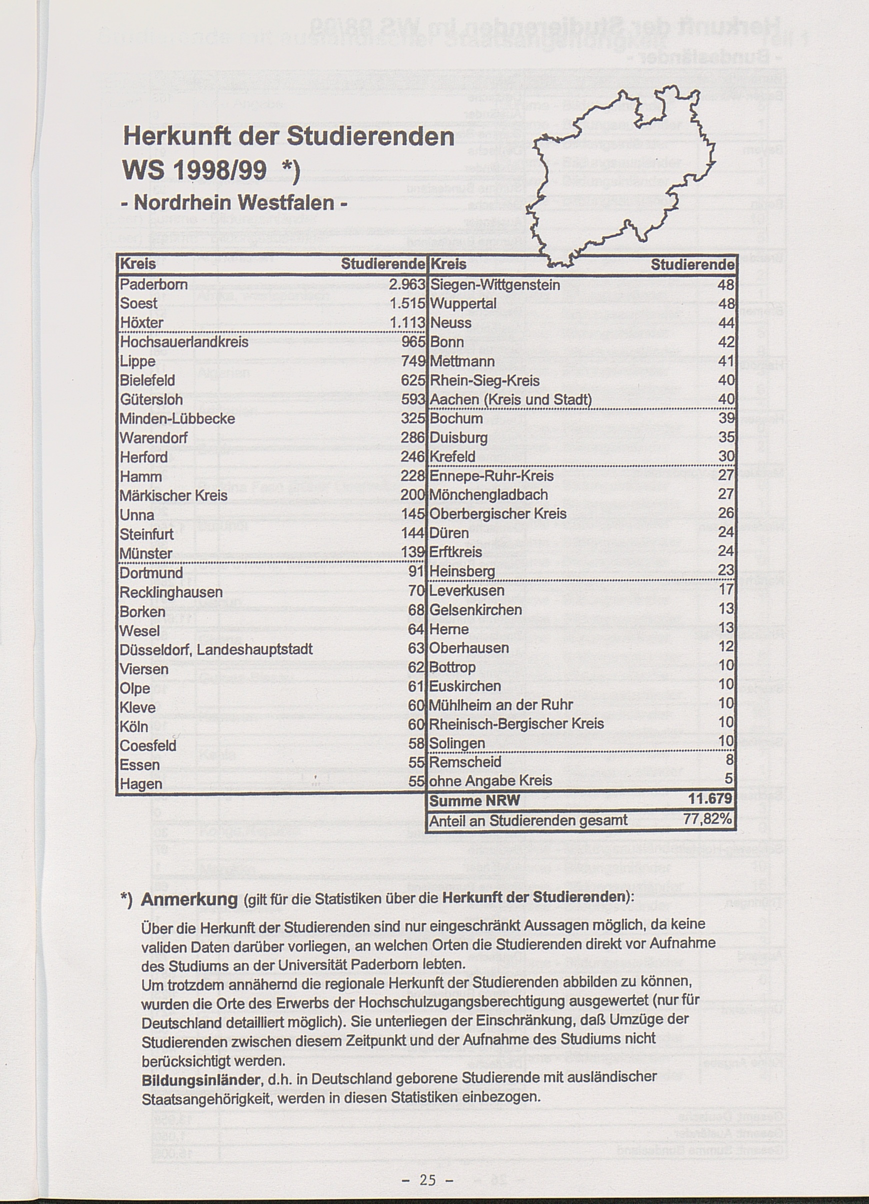 Die Standorte (Studierendenzahlen in Paderborn, Höxter, Meschede und Soest seit 1972; Fachbereichsstatistik)