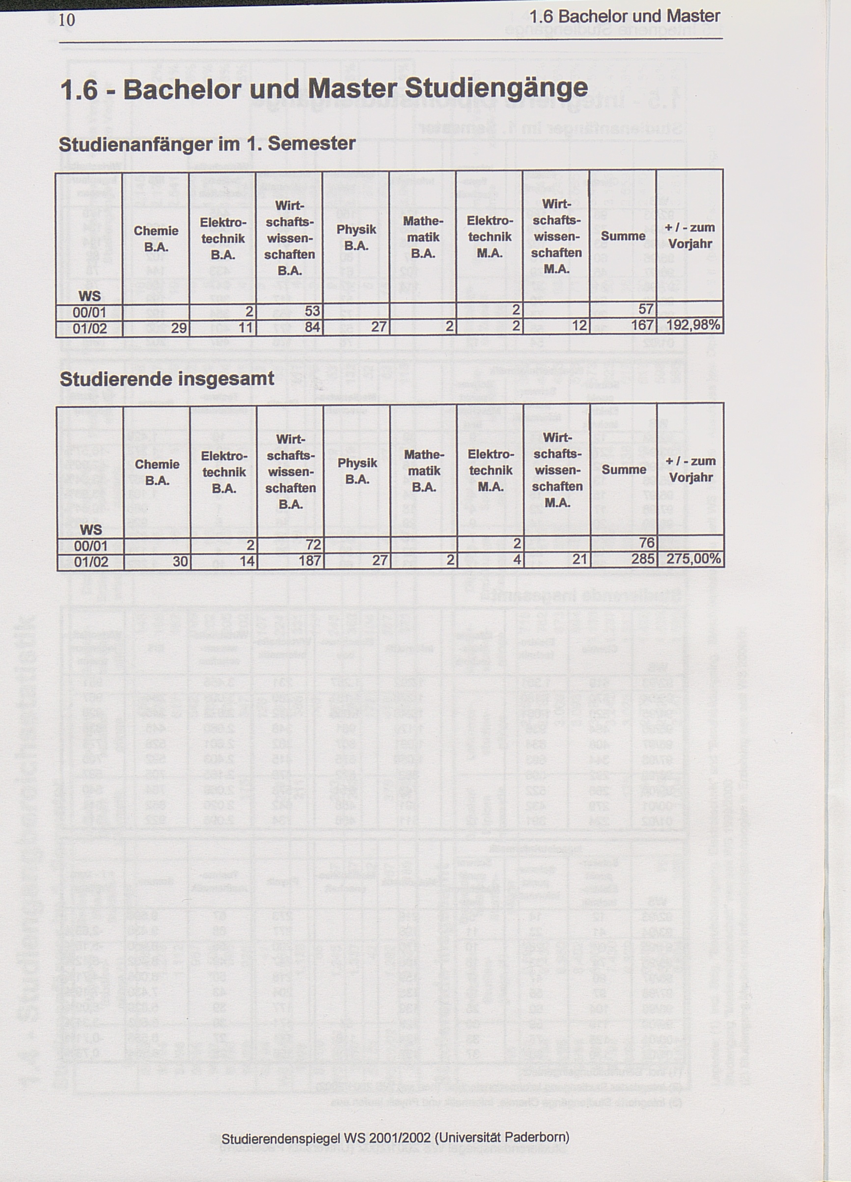 1.6 Studierende in den Bachelor / Master-Studiengängen