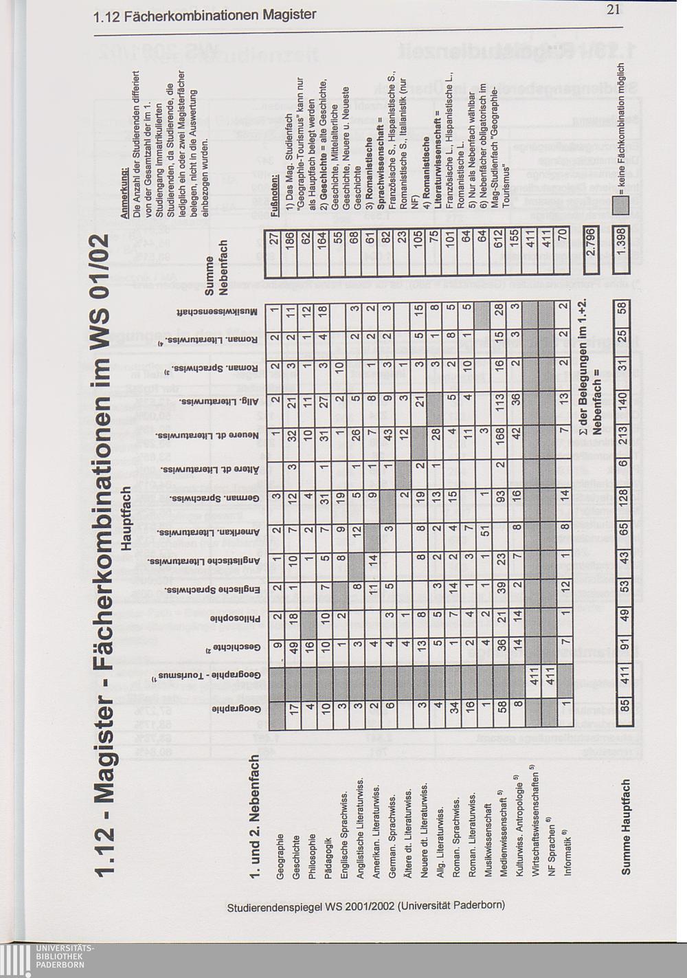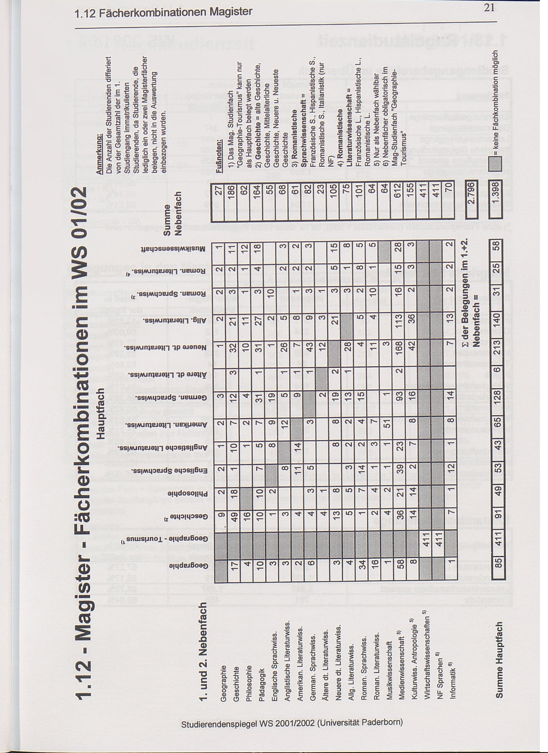 1.12 Fächerkombinationen in den Magisterstudienfächern