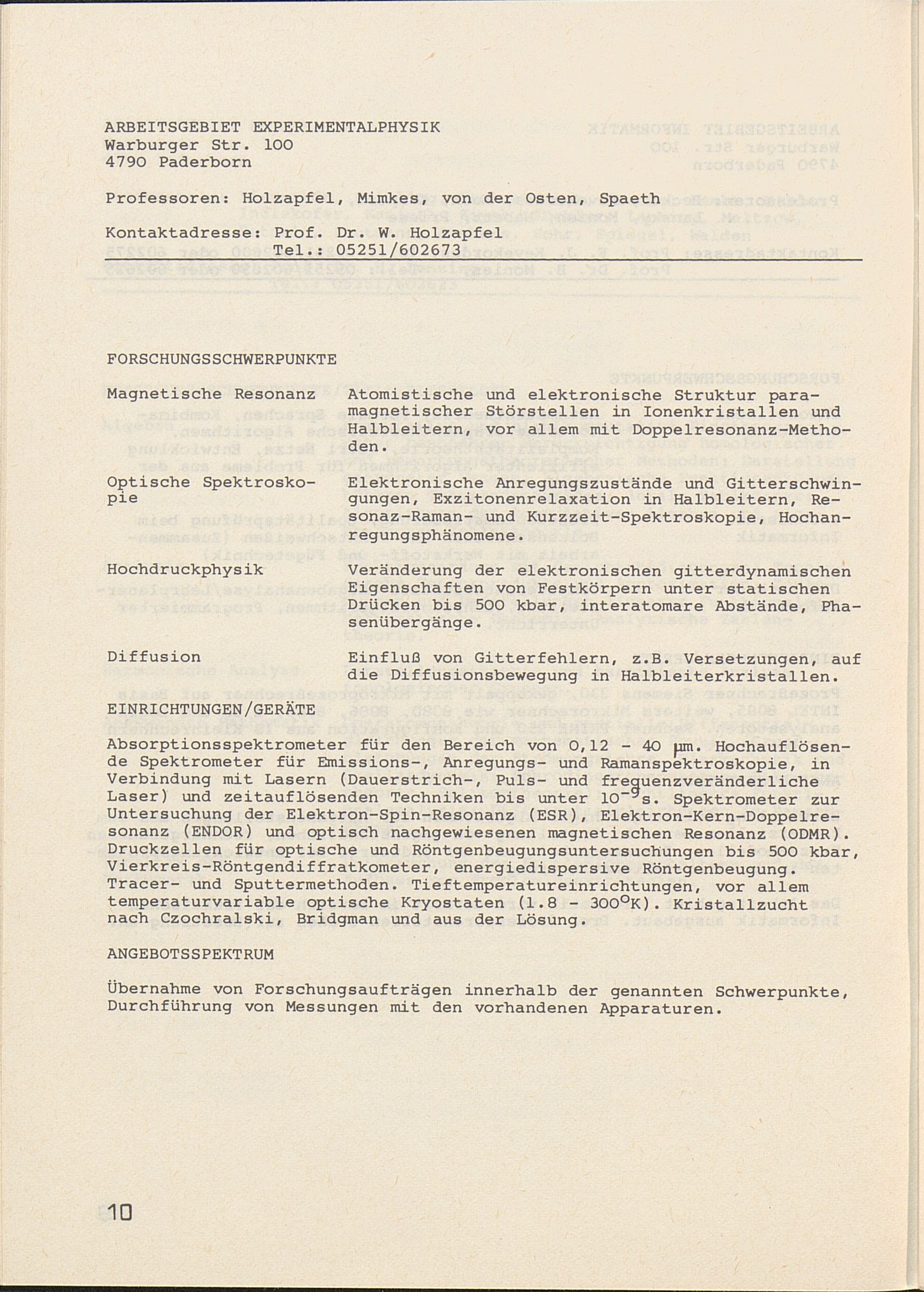 Experimentalphysik: Magnetische Resonanz, Optische Spektroskopie, Hochdruckphysik,[...]