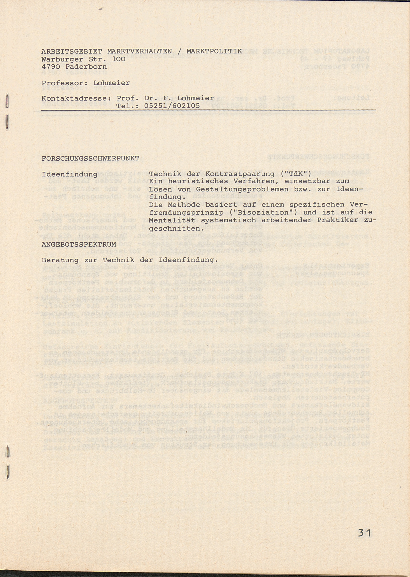 Marktverhalten / Marktpolitik: Ideenfindung