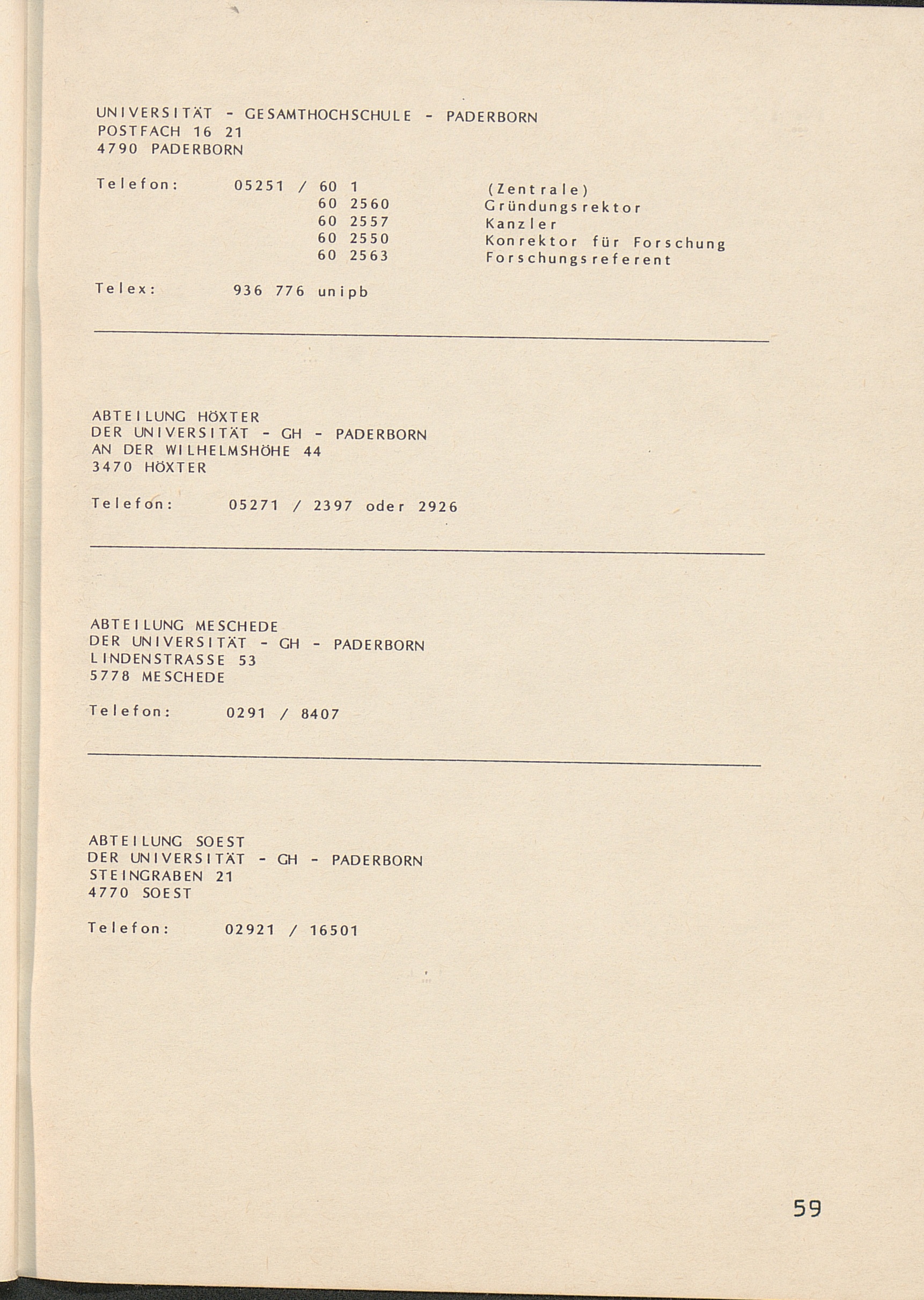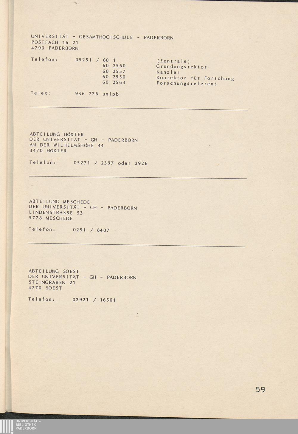 Anschriften der Hochschulverwaltung