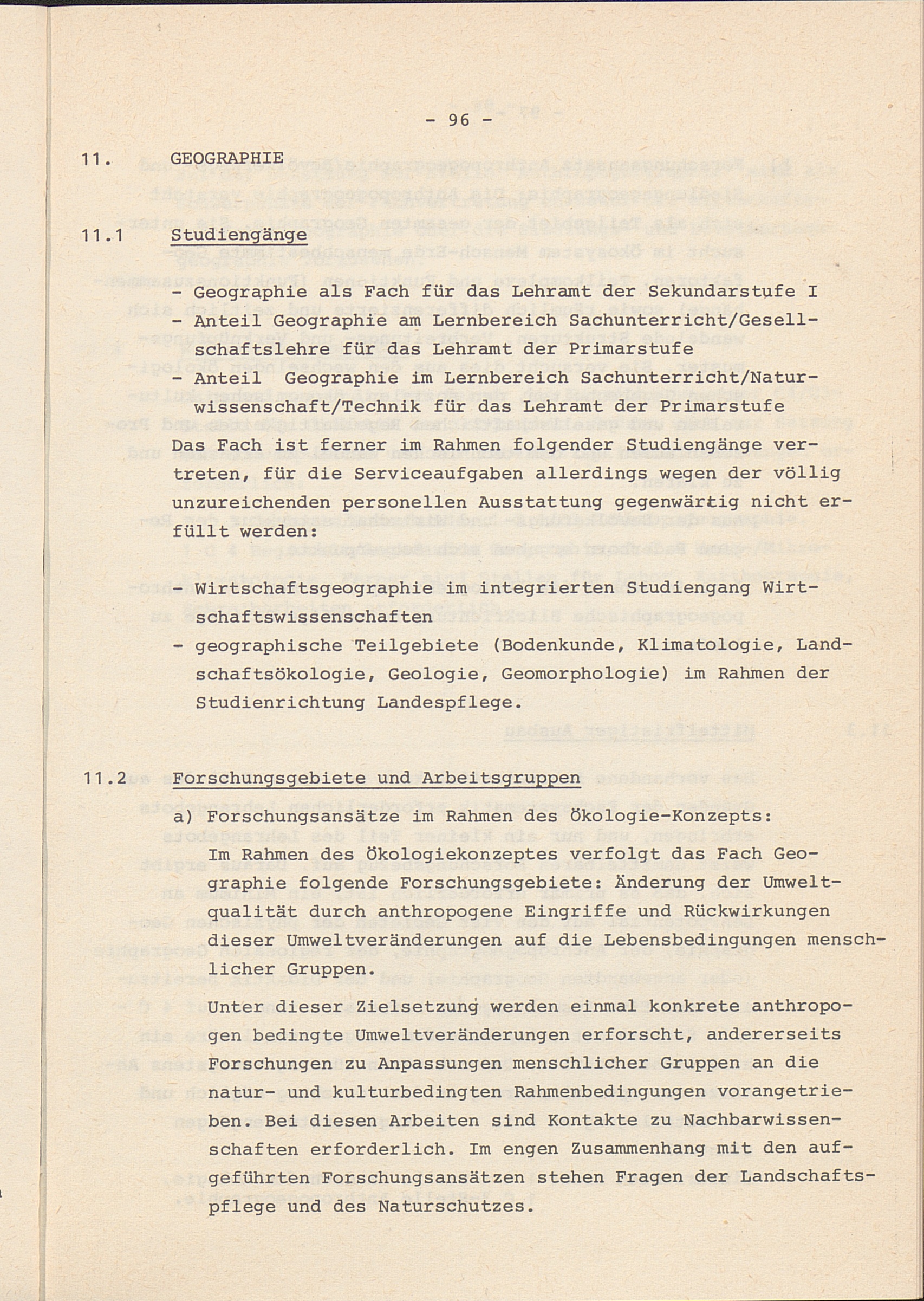 B) Ausbauplanungen der Fächer und zentralen Einrichtungen