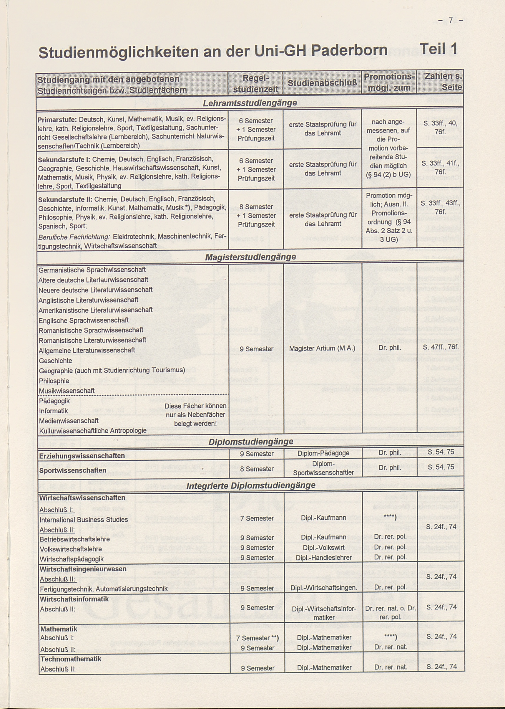 Studienmöglichkeiten an der Uni-GH Paderborn