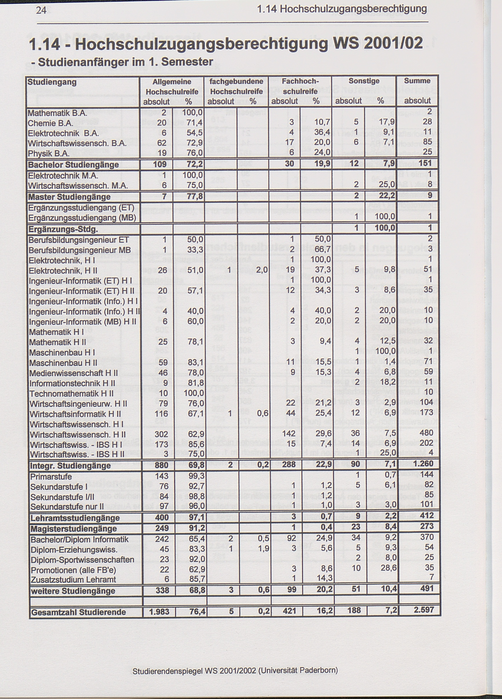 1.18 Studierende im Wintersemester 2001/02 im Überblick