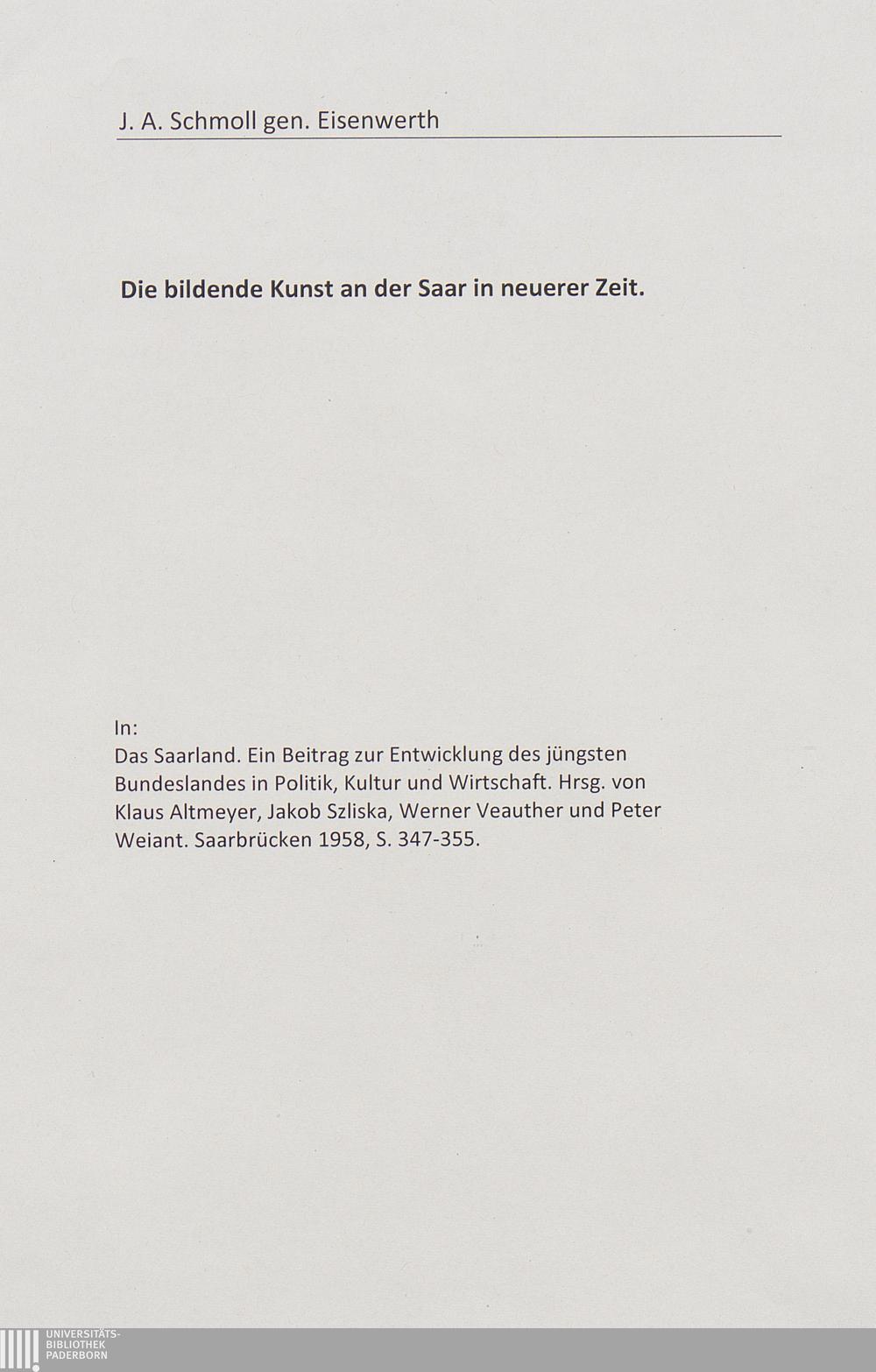 Die bildende Kunst an der Saar in neuerer Zeit / J.A. Schmoll genannt Eisenwerth