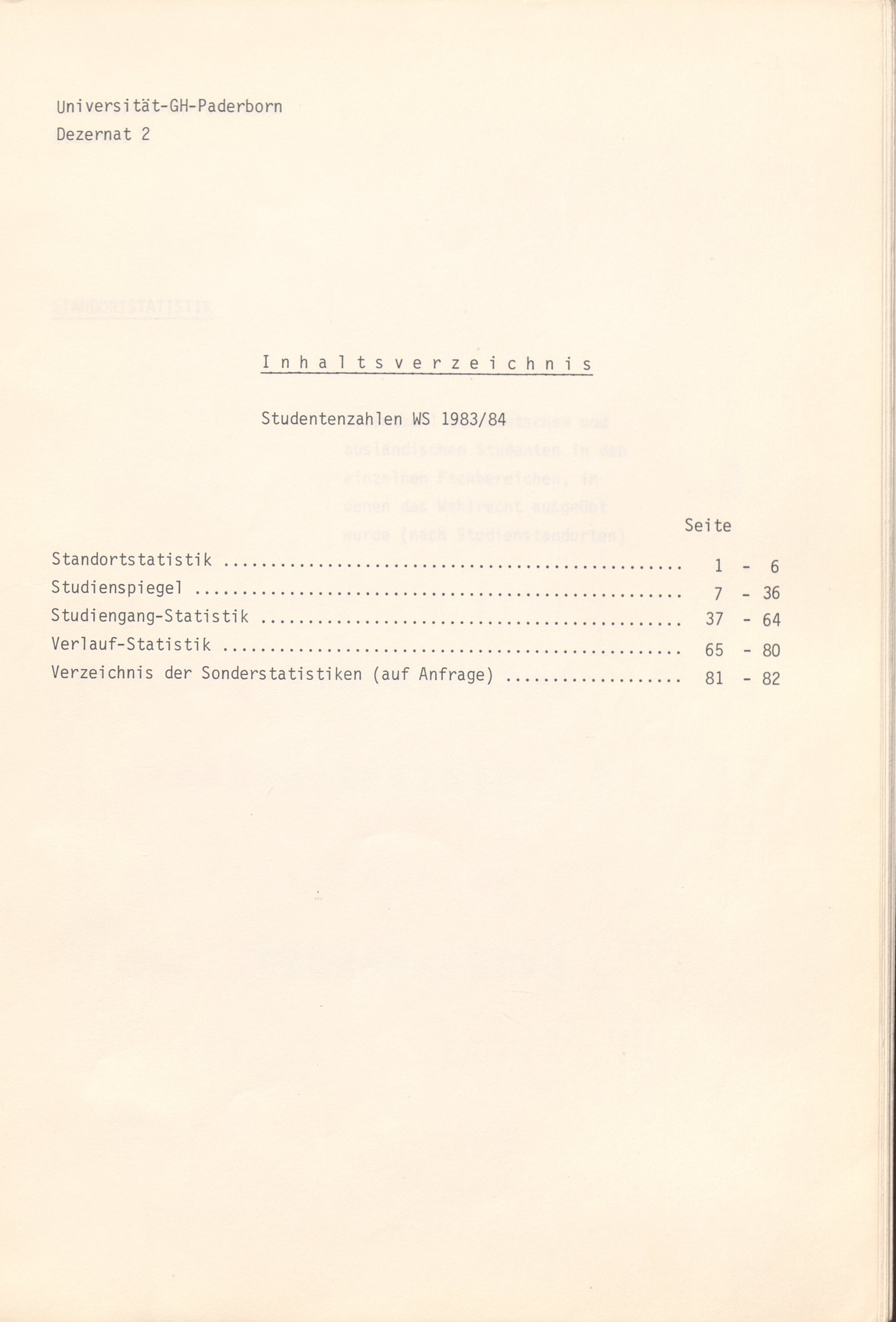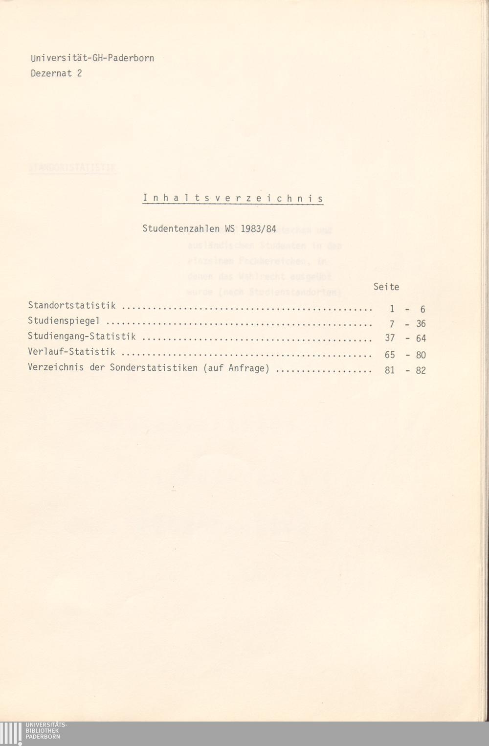 Verzeichnis der Sonderstatistiken (auf Anfrage)
