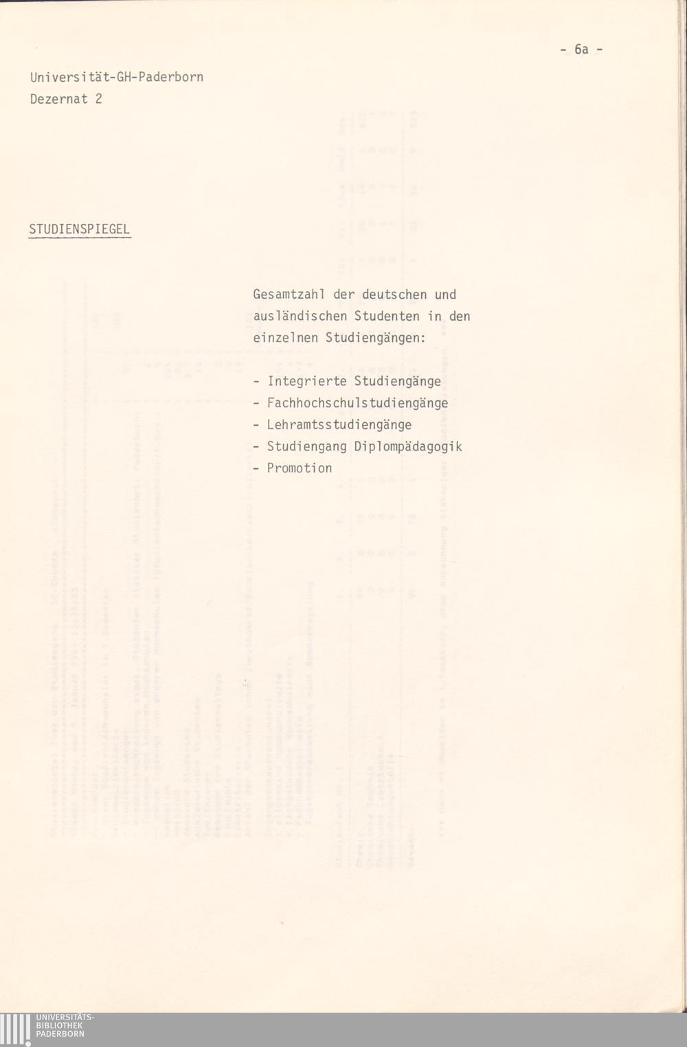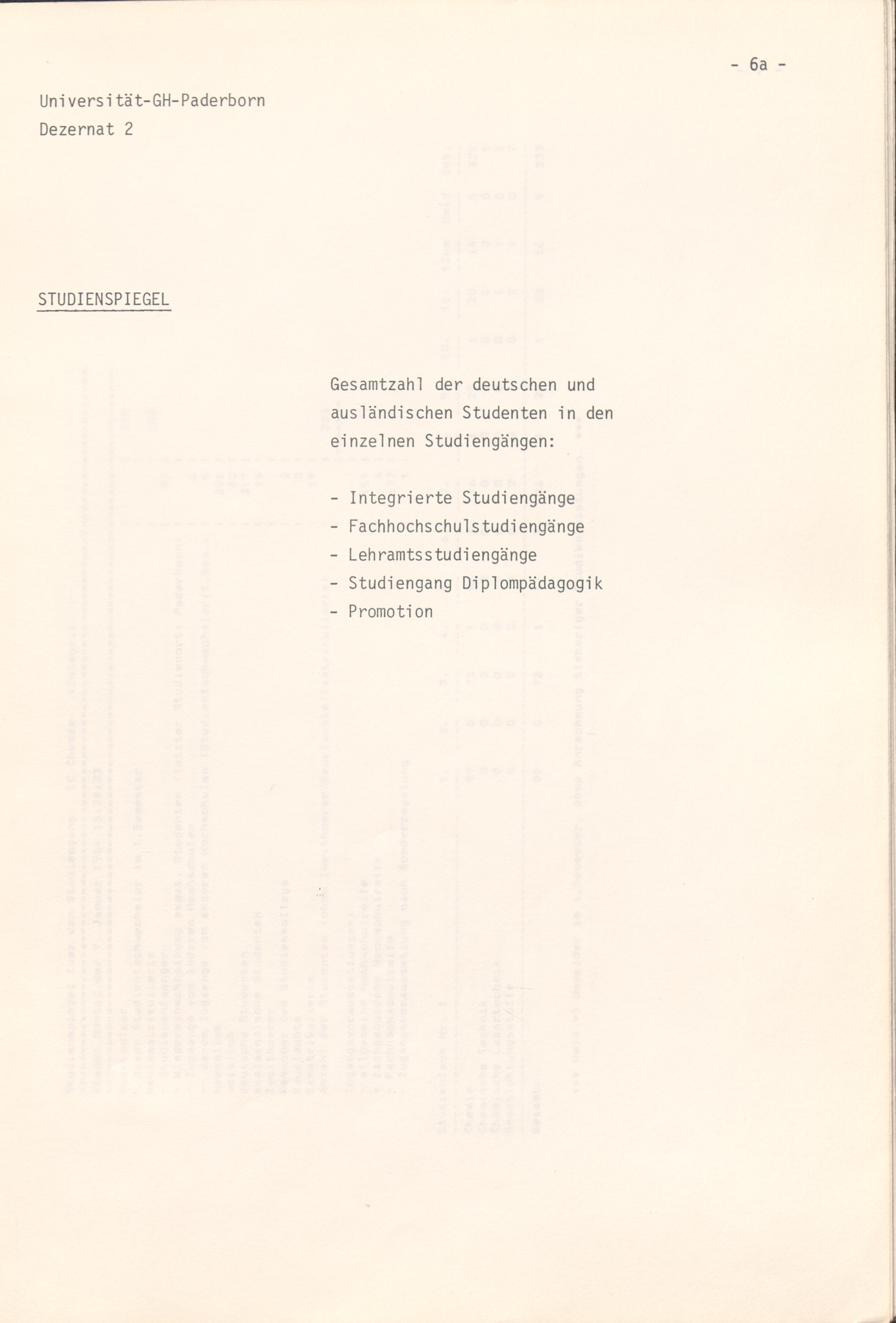 Verzeichnis der Sonderstatistiken (auf Anfrage)