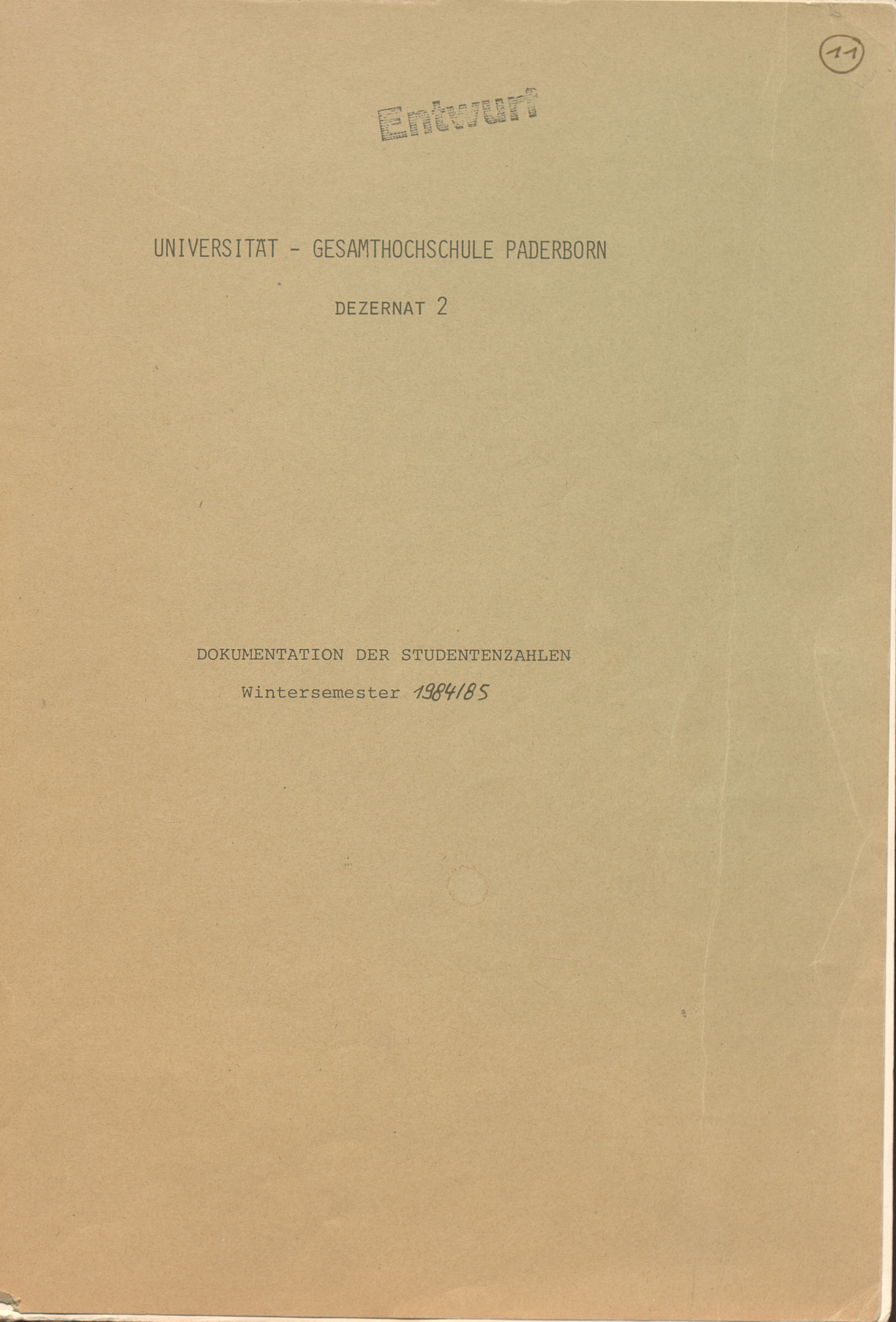 Studiengang-Dokumentation WS 1984/85 (Gesamtübersicht)
