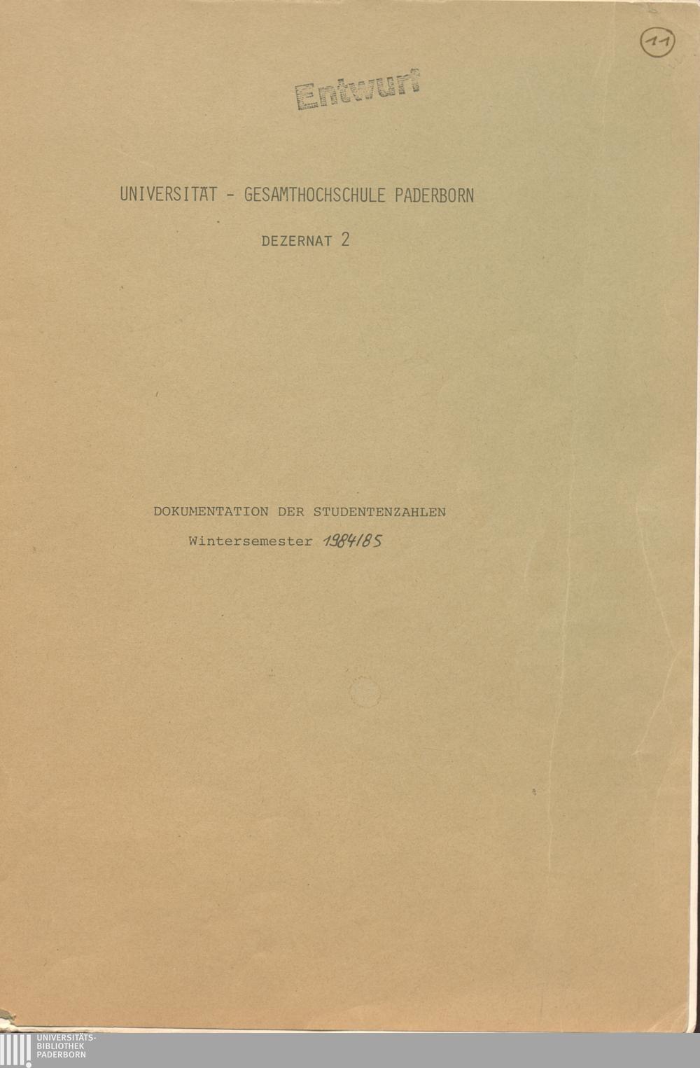 Studiengang-Dokumentation WS 1984/85 (nach Fachbereichen)
