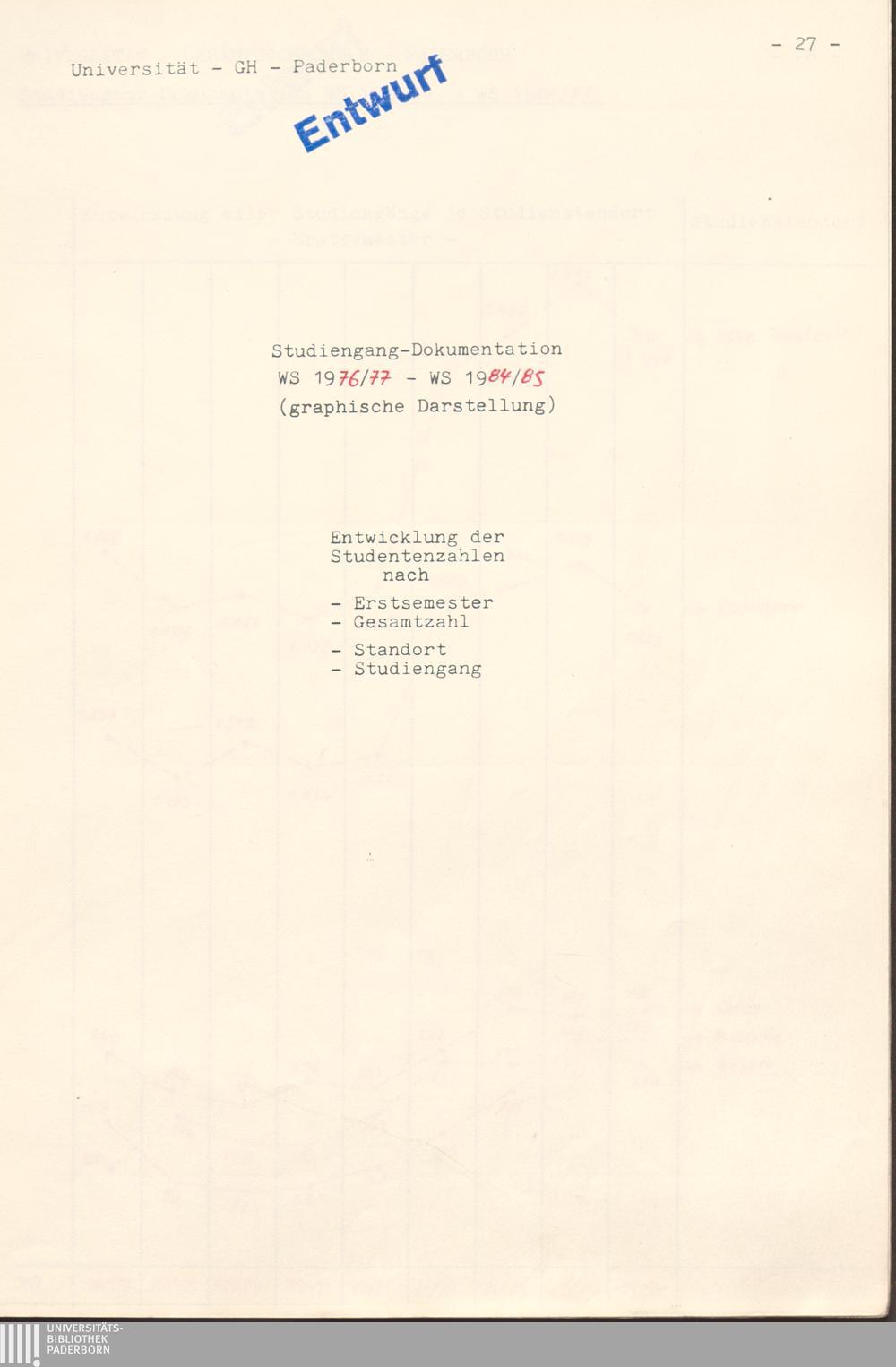 Studiengang-Dokumentation WS 1976/77 bis WS 1984/85 (Graphik)