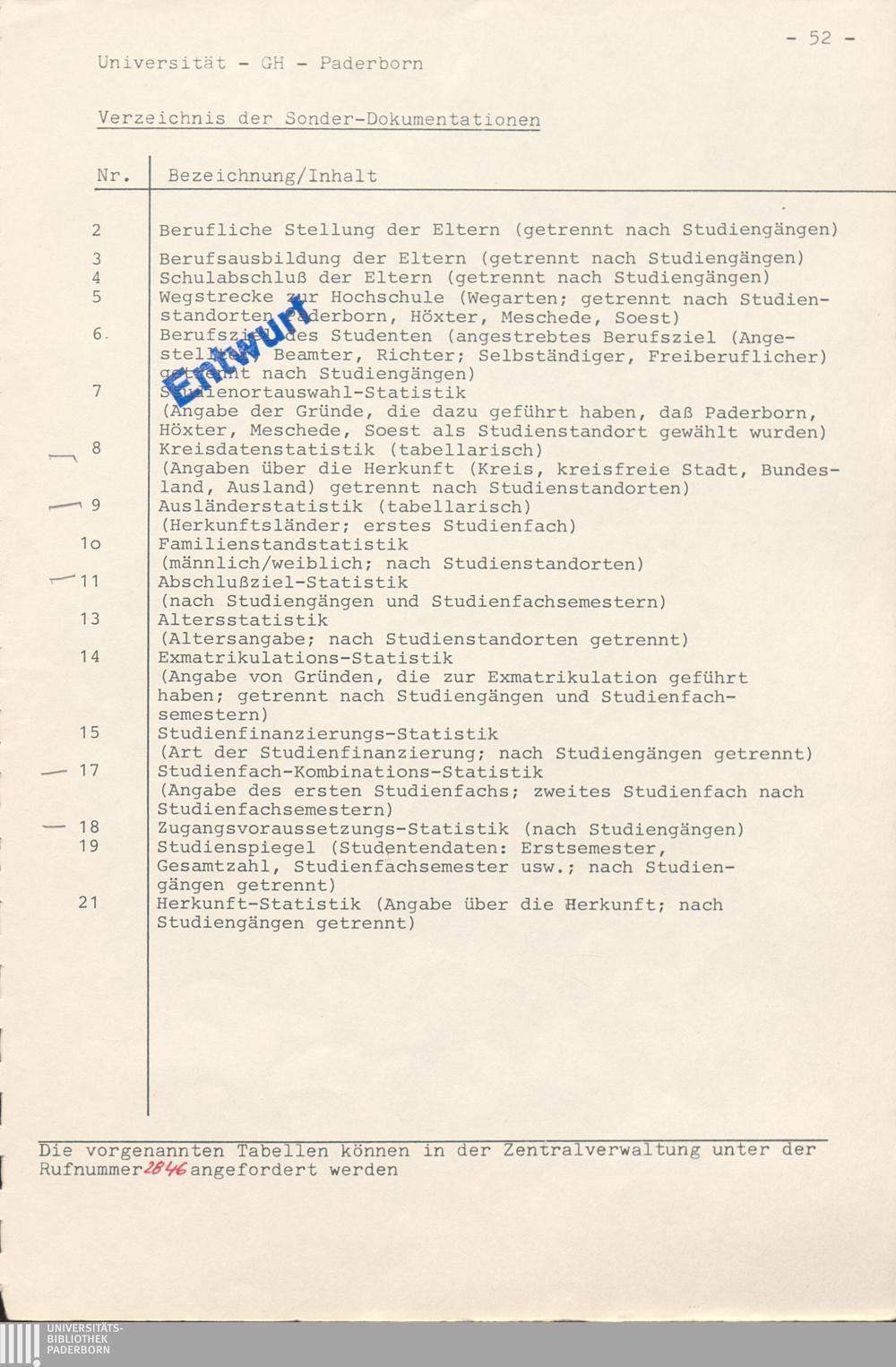 Verzeichnis der Sonderdokumentationen, die auf Anfrage zur Verfügung gestellt werden[...]