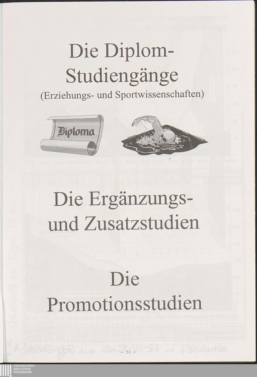 Die Diplom-Studiengänge, Ergänzungs- und Zusatzstudiengänge, Promotionsstudien