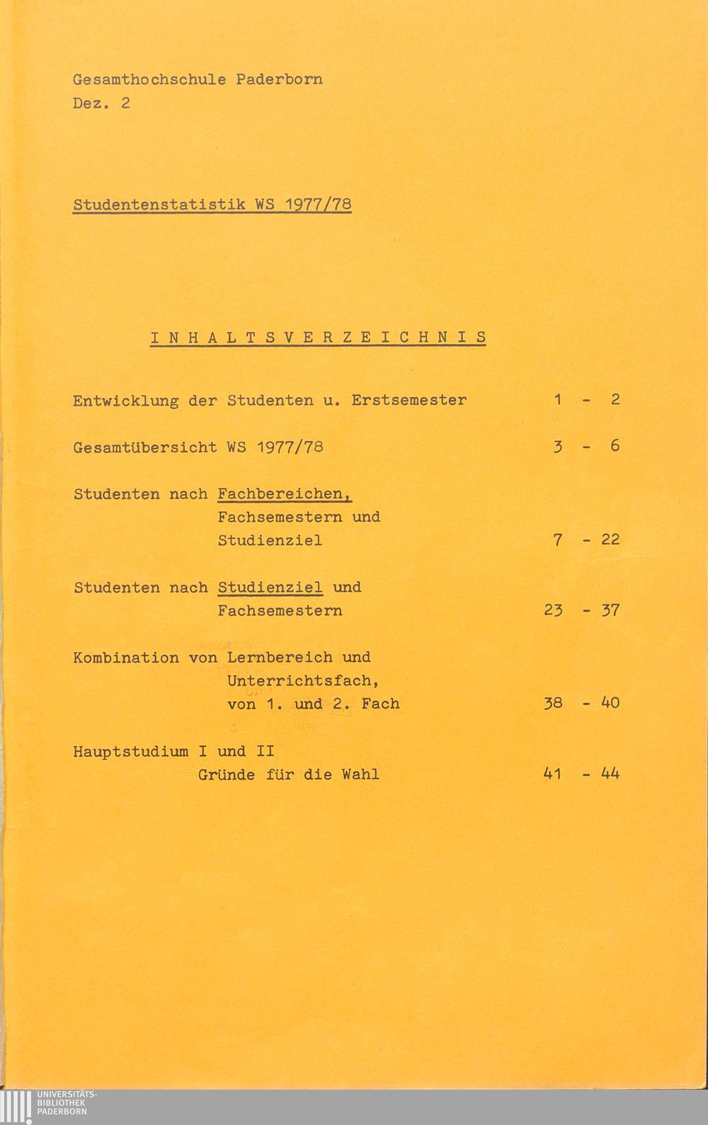 Gesamtübersicht WS 1977/78