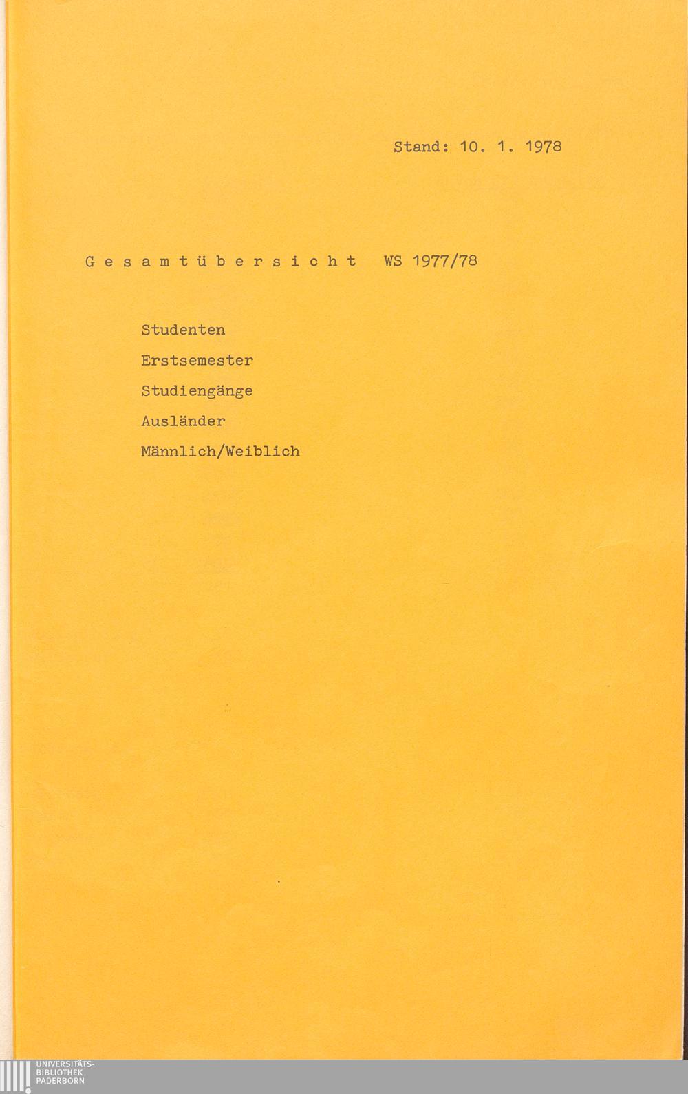 Gesamtübersicht WS 1977/78