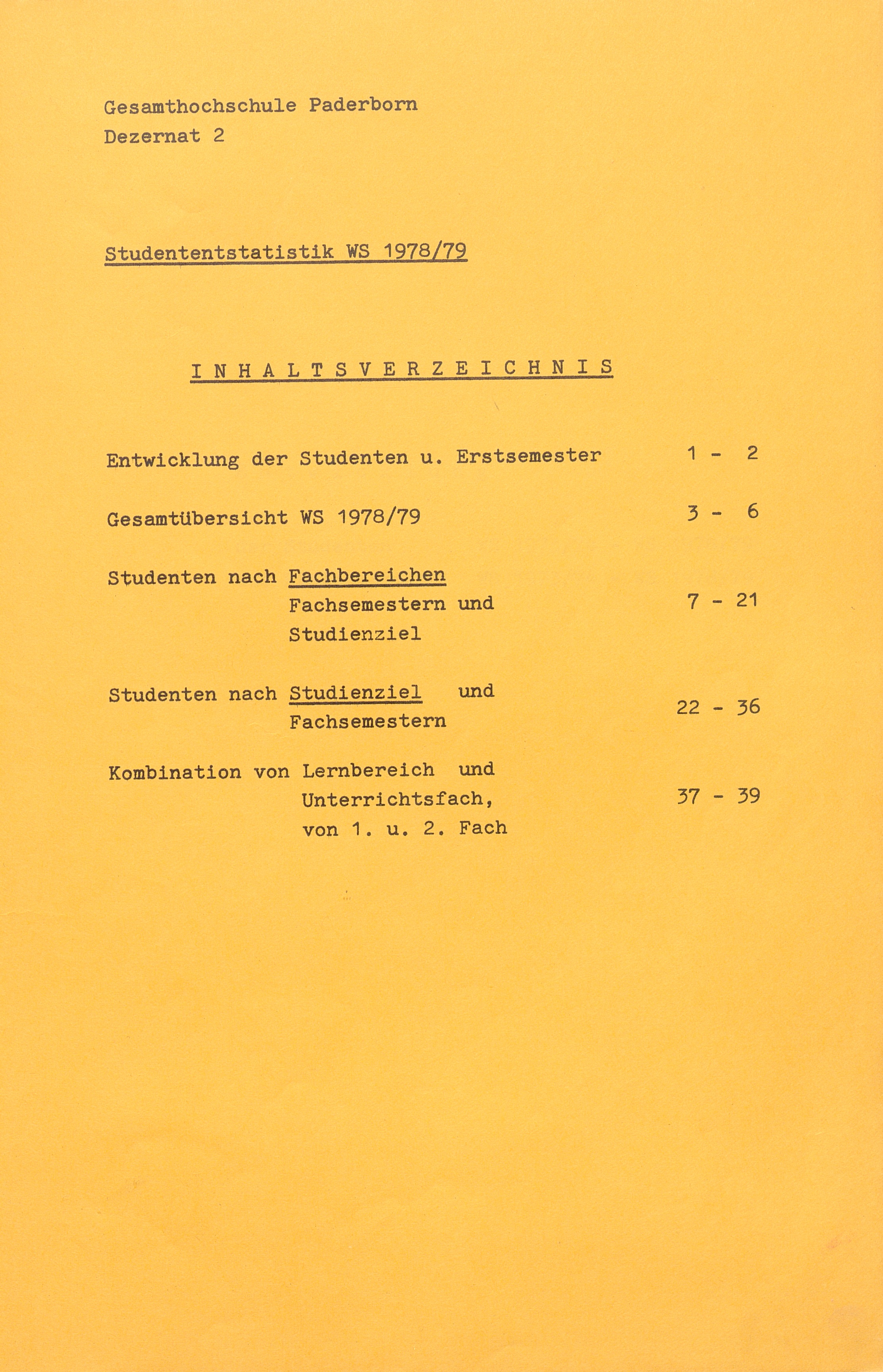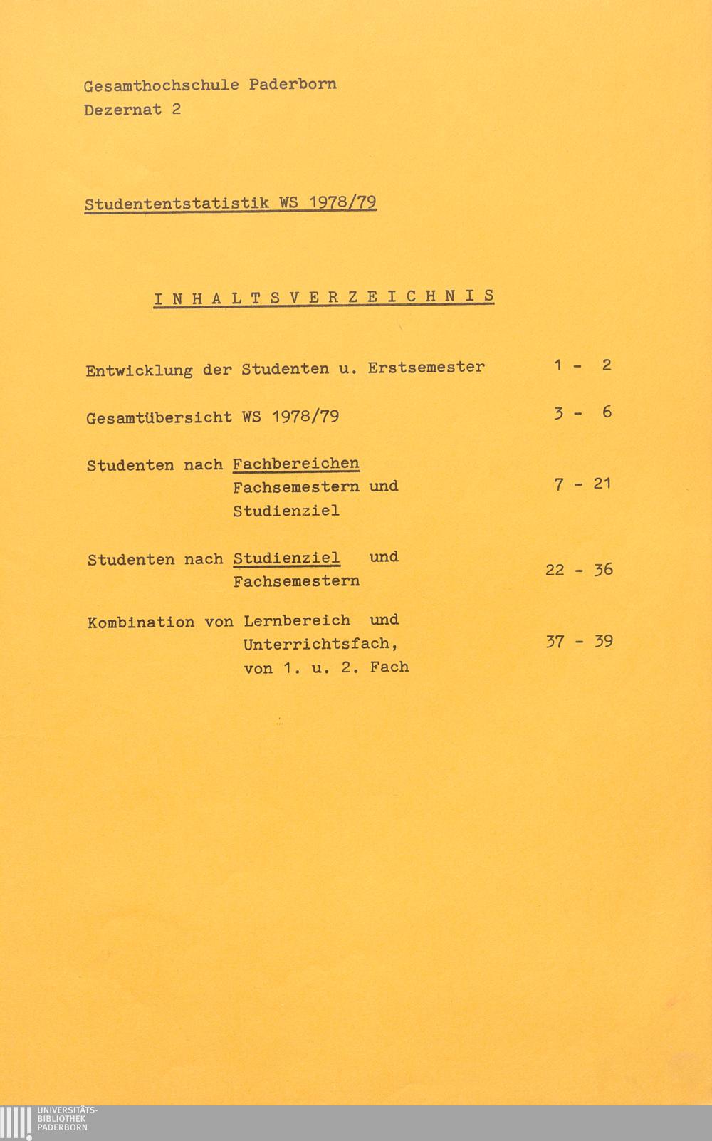 Studenten nach Fachbereichen, Fachsemestern und Studienziel