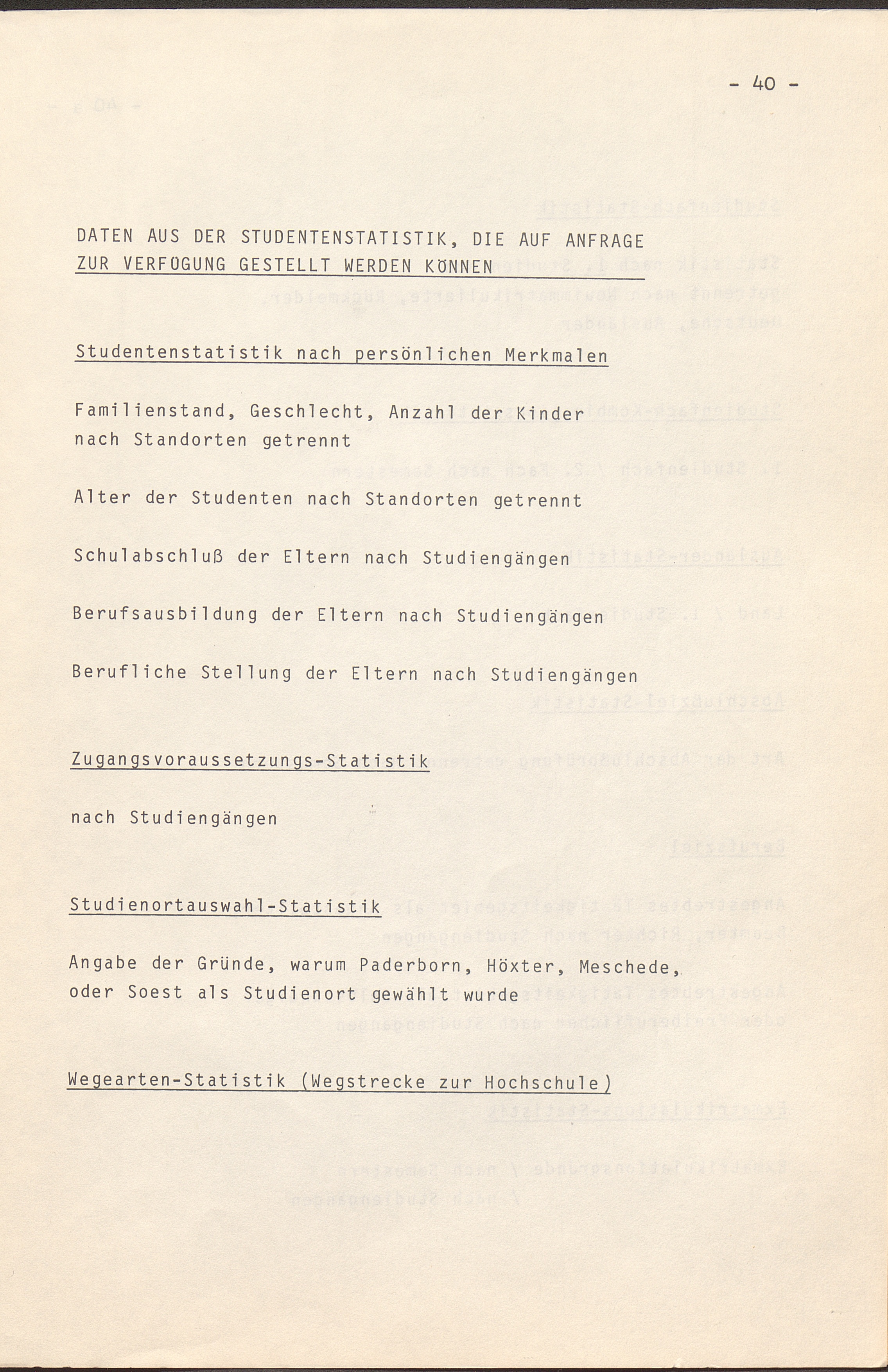 Inhaltsangabe über Daten aus der Studentenstatistik, die auf Anfrage zur Verfügung gestellt werden können.