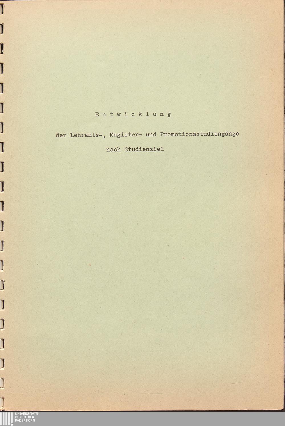 Entwicklung der Lehramts-, Magister- und Promotionsstudiengänge nach Studienziel