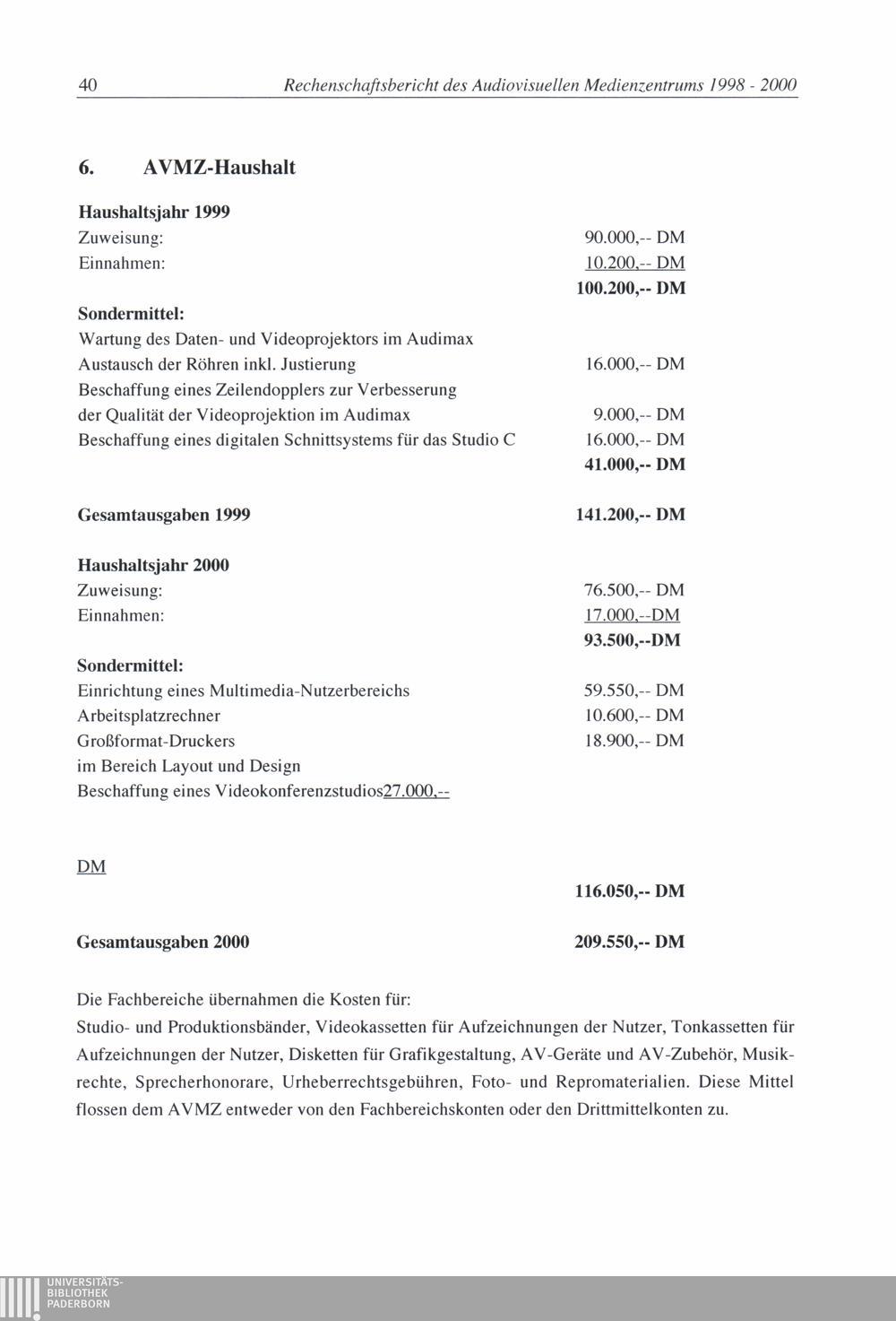 6. AVMZ-Haushalt