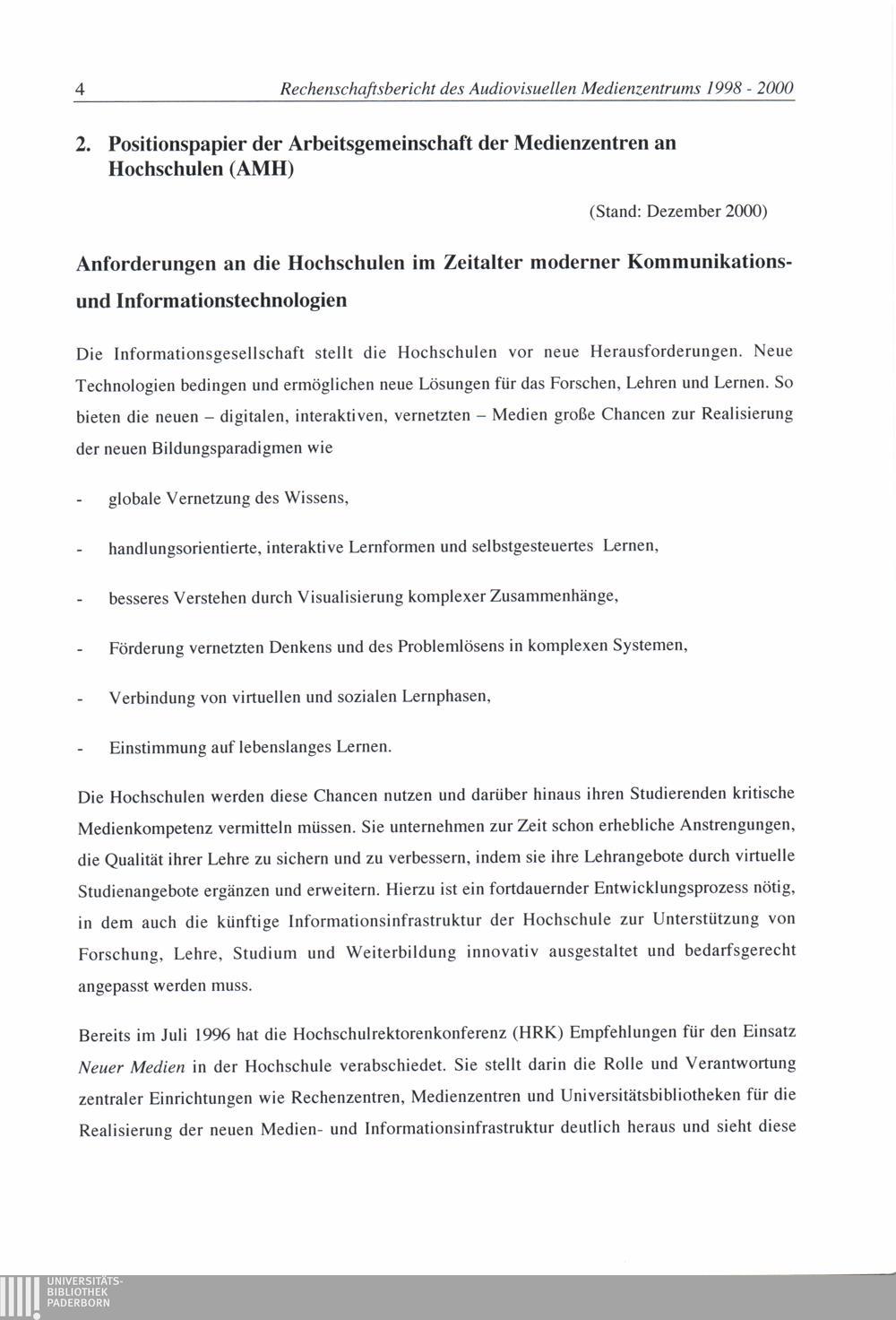 2. Positionspapier der Arbeitsgemeinschaft der Medienzentren an Hochschulen (AMH[...]