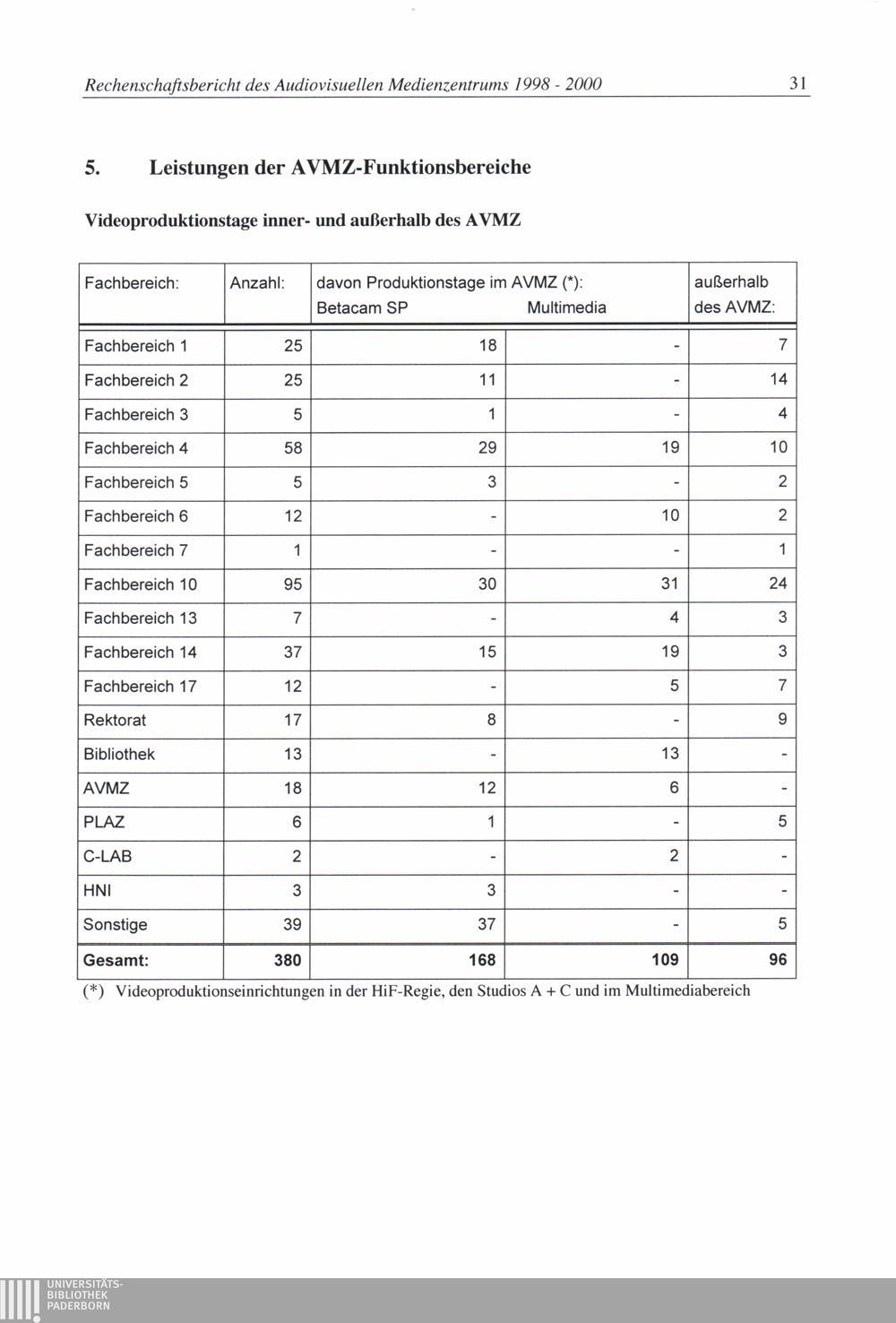 5. Leistungen der AVMZ-Funktionsbereiche