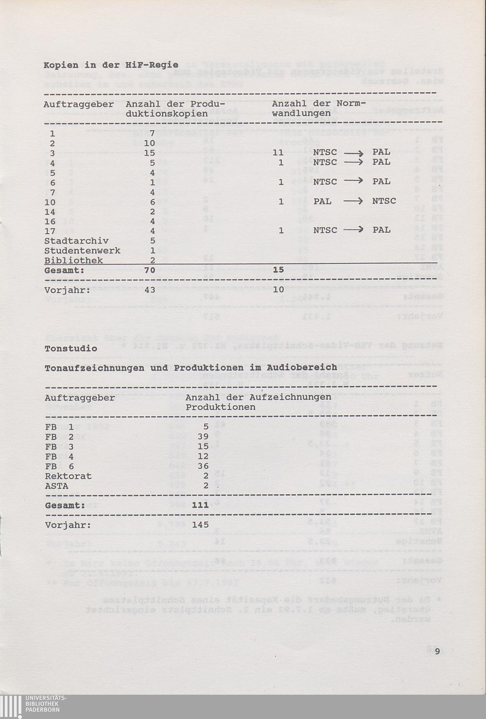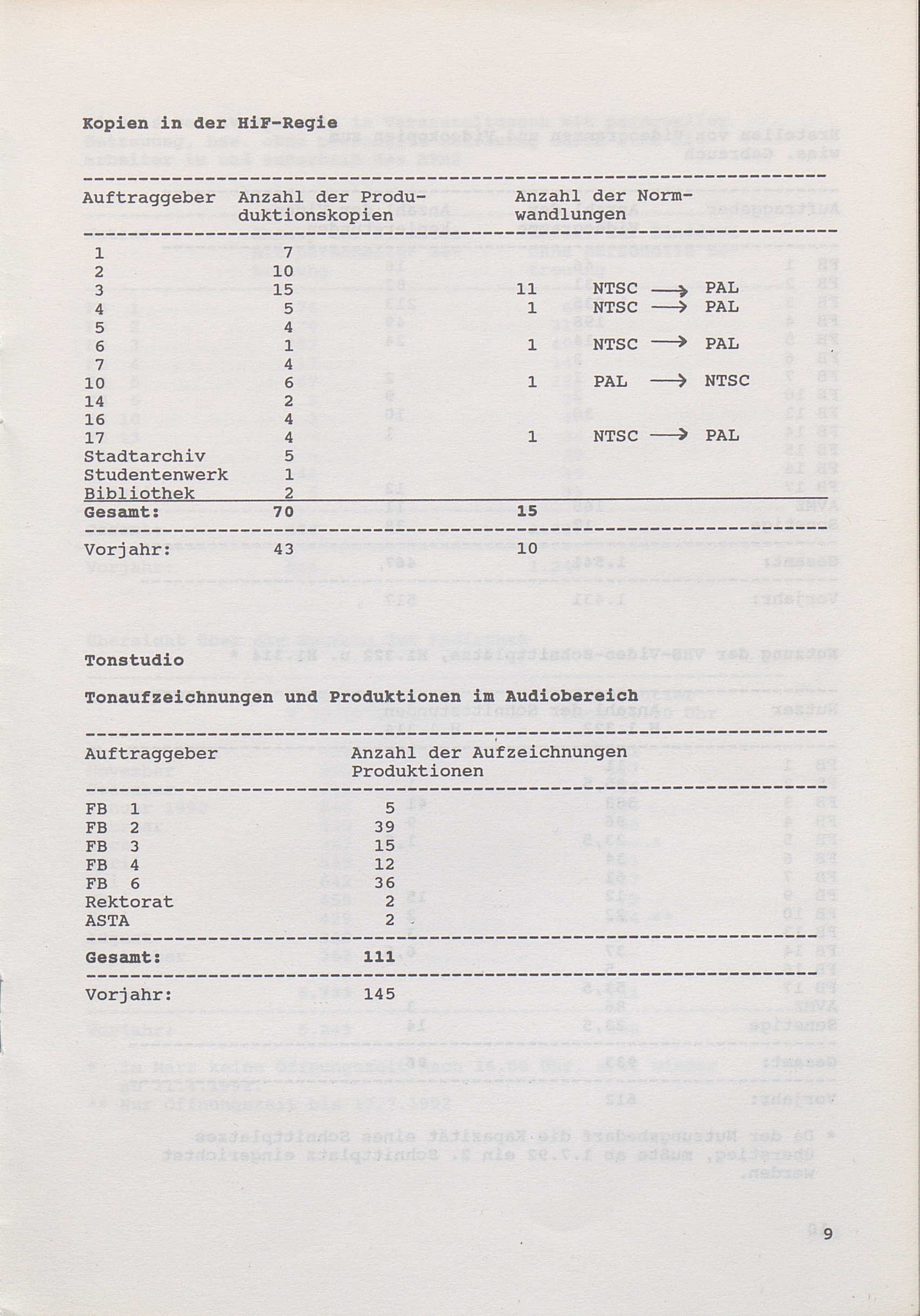 Kopien in der HiF-Regie