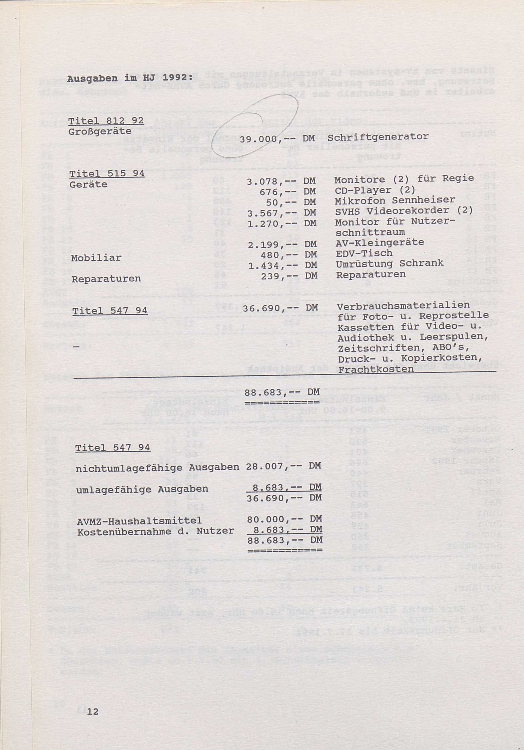 Haushalt des AVMZ