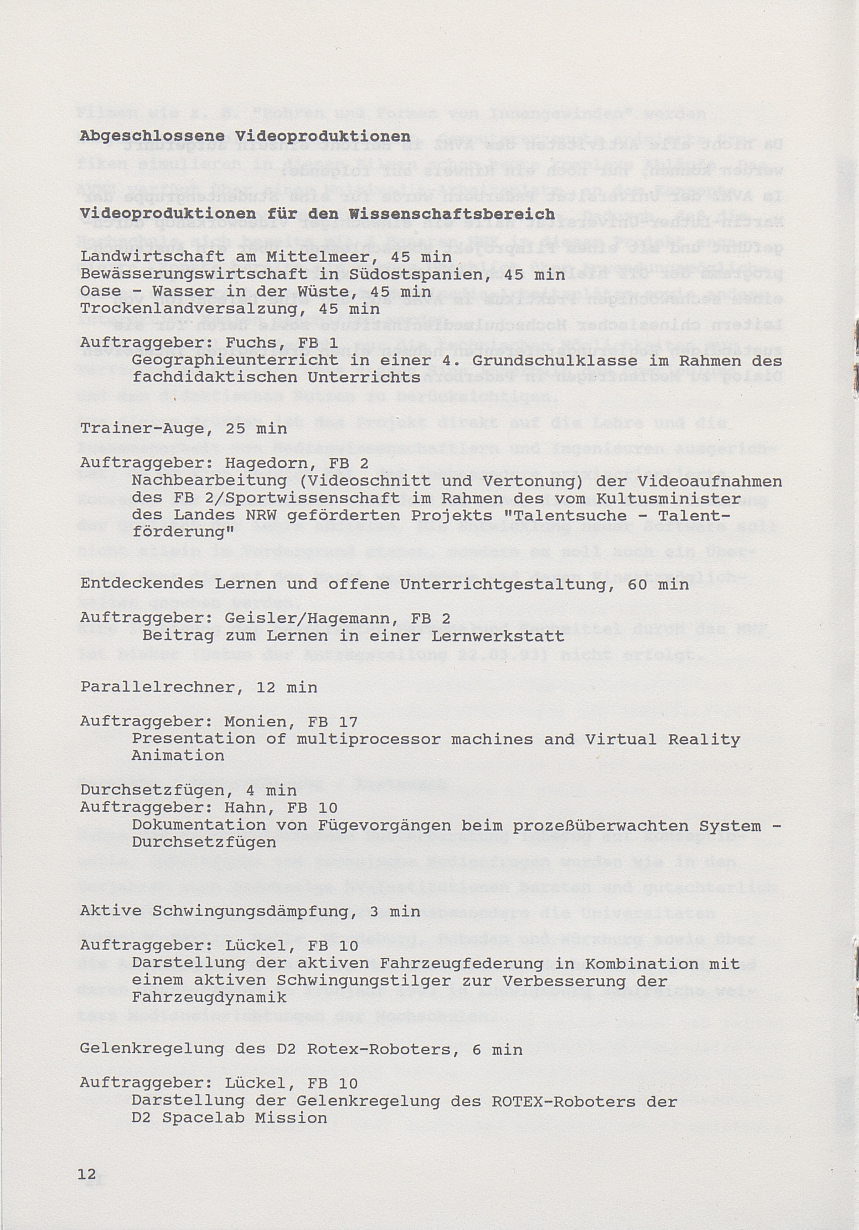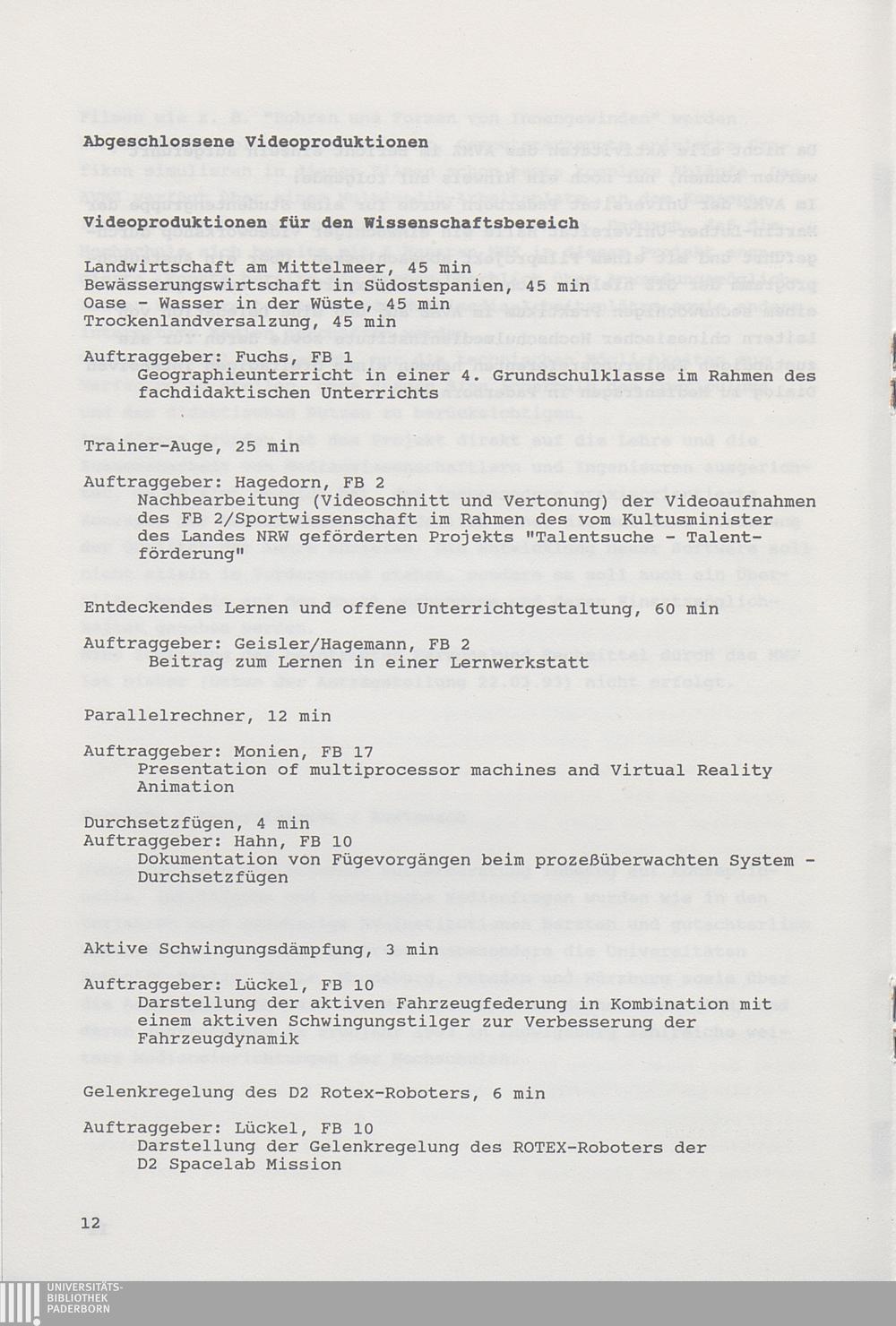 Anmerkungen zu den Nutzerbereichen des AVMZ