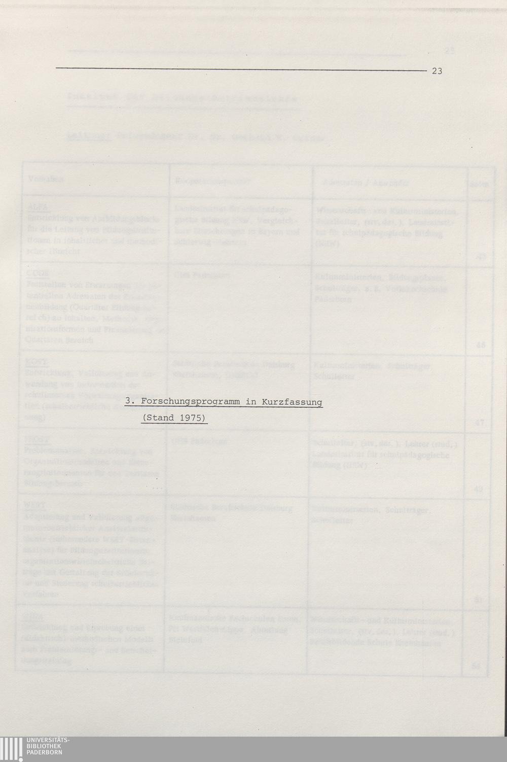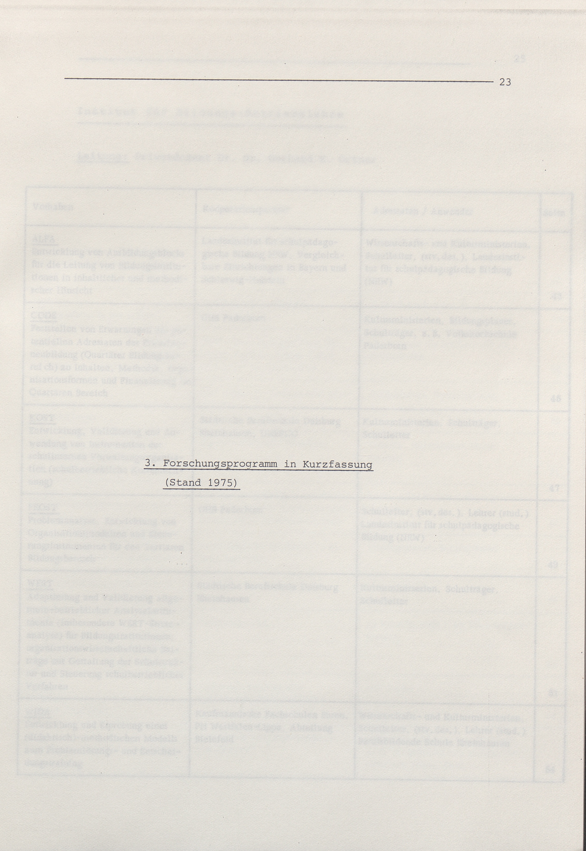 3. Forschungsprogramm in Kurzfassung (Stand 1975)