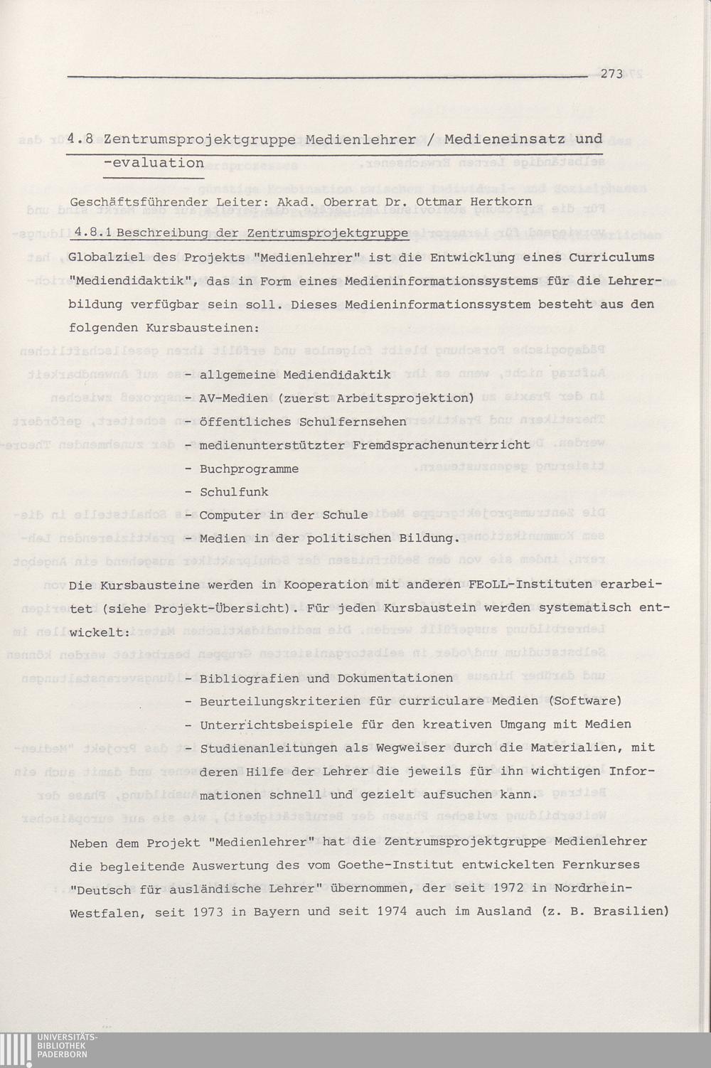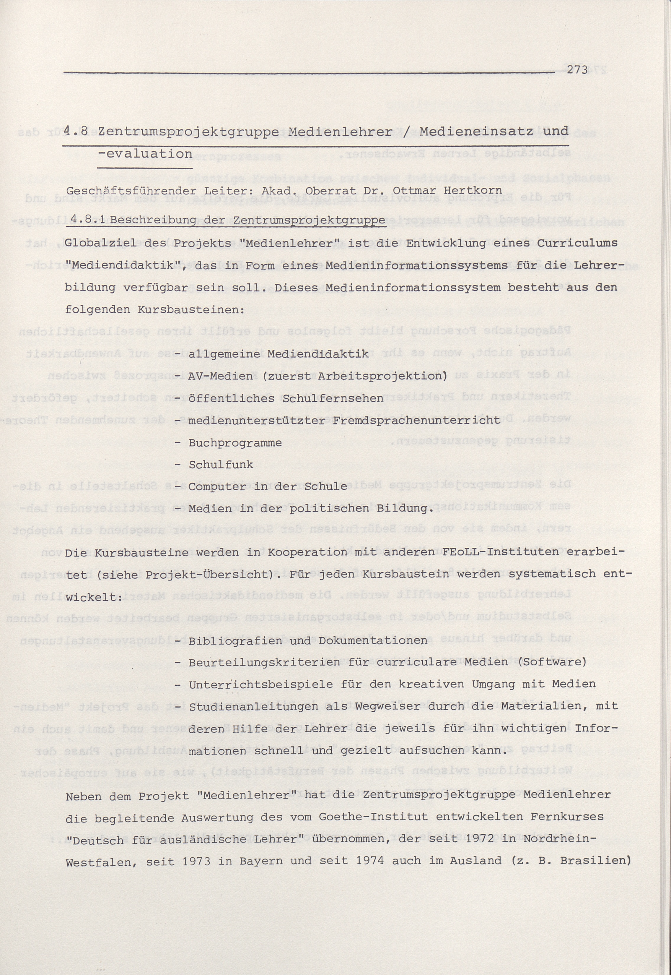 4.8 Zentrumsprojektgruppe Medienlehrer / Medieneinsatz und Evaluation