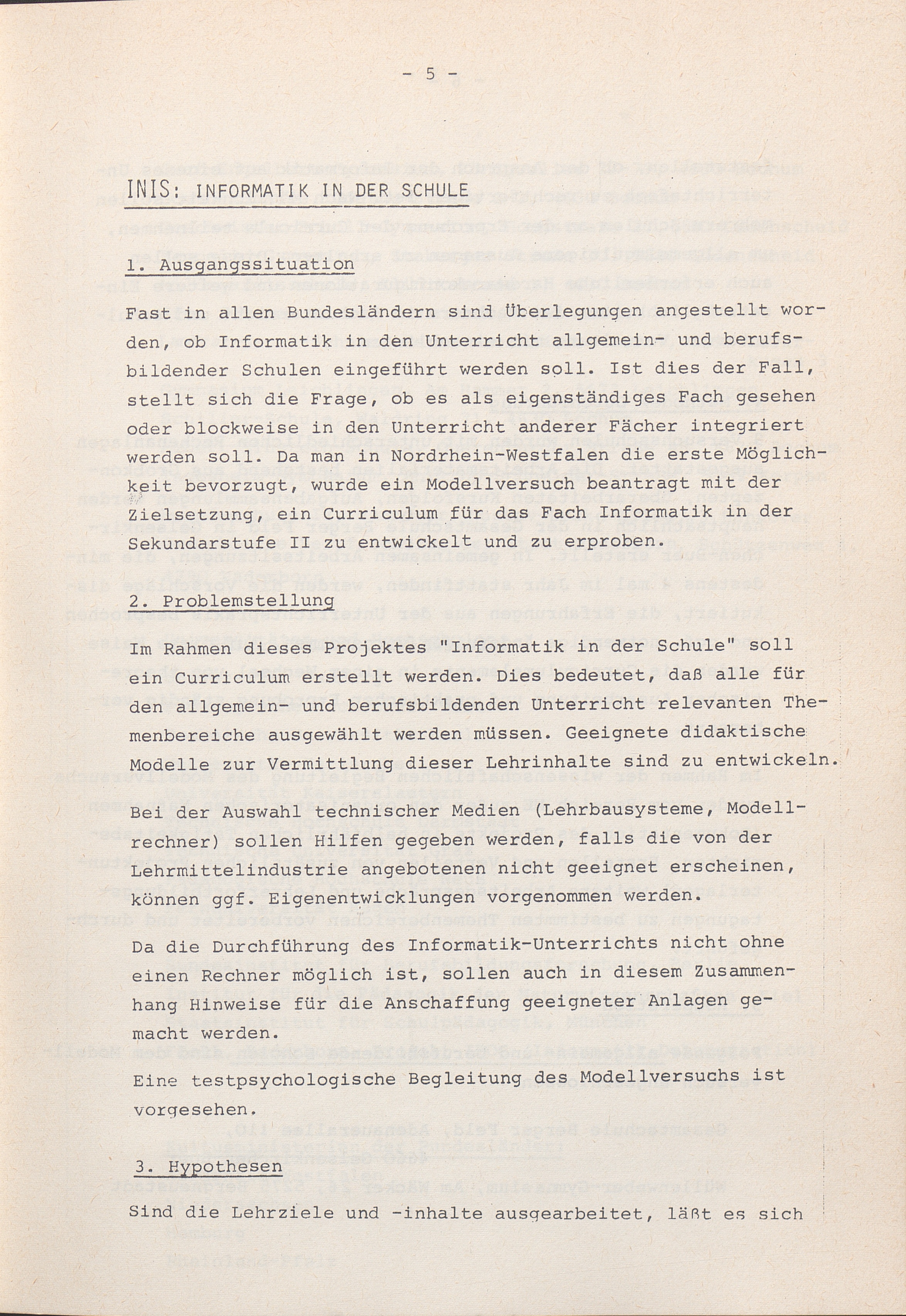 INIS: Informatik in der Schule