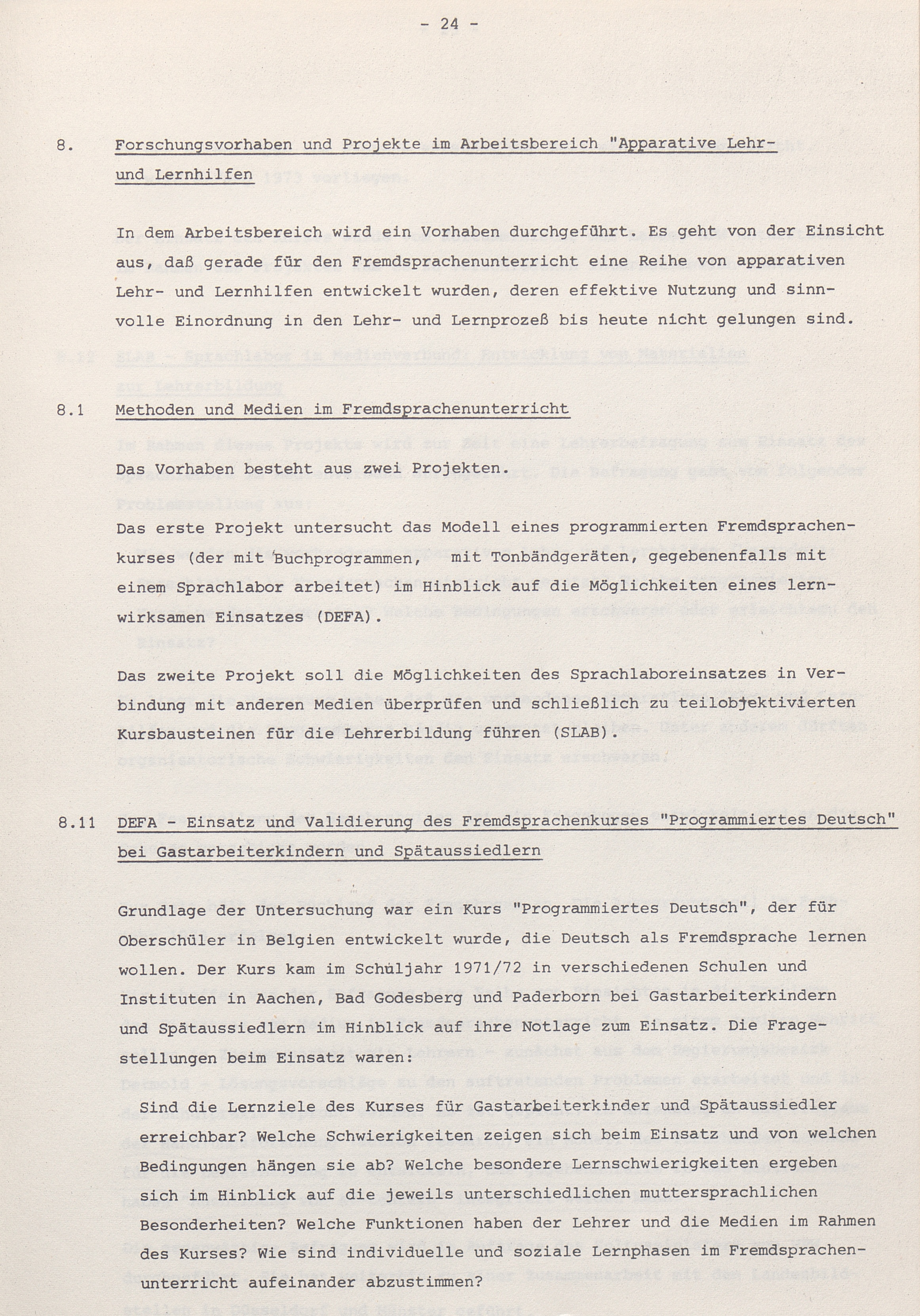8. Forschungsvorhaben und Projekte im Arbeitsbereich "Apparative Lehr- und Lernhilfen"